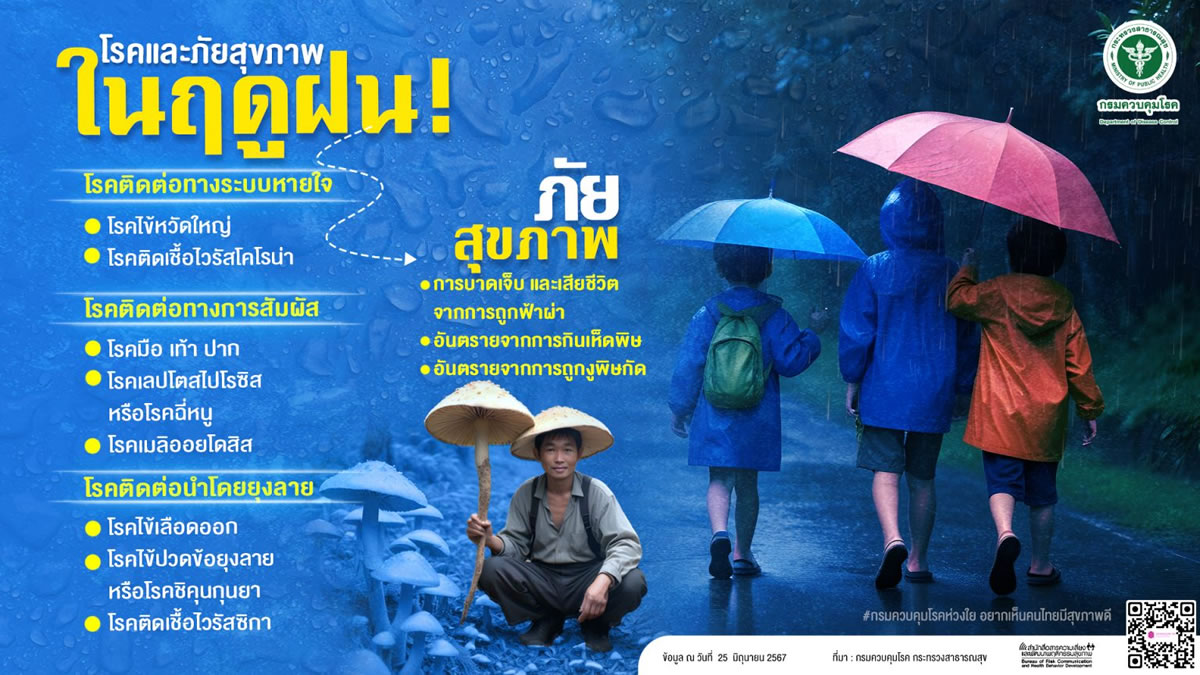 タイ保健省疾病管理局は、雨季の間の病気と健康被害について注意を呼びかけています。