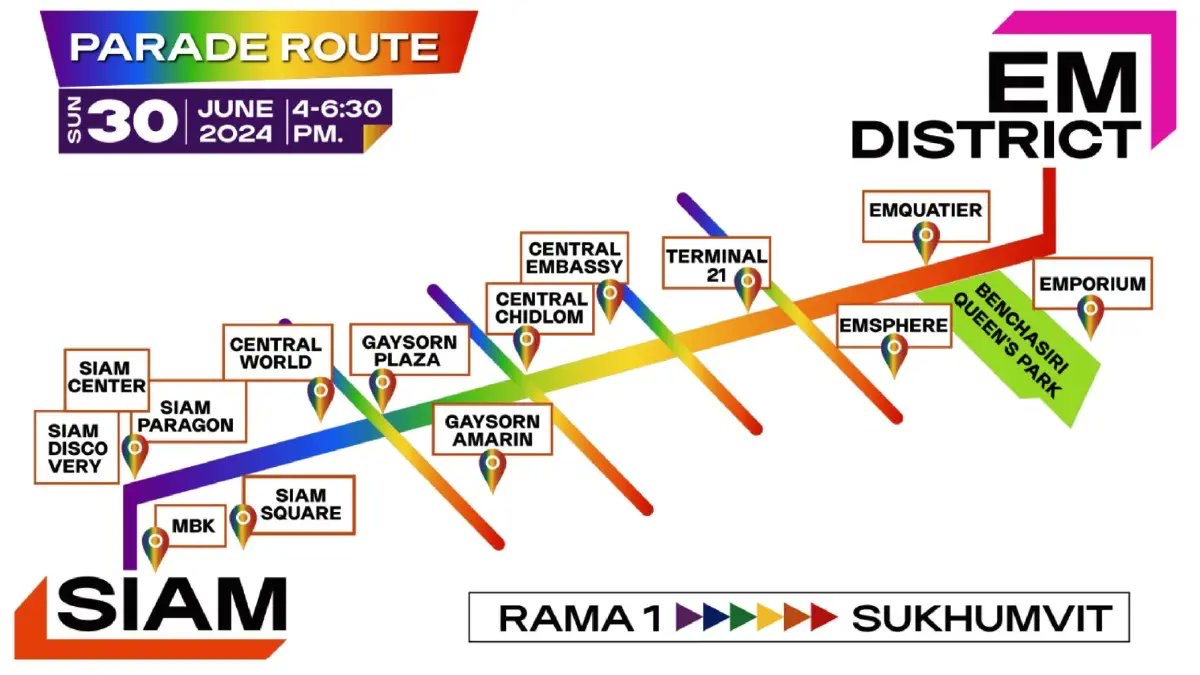 6月30日(日)、バンコク中心部においてアジアで最も長い列となるパレード(ラブ・プライドパレード)が行われる見込みです。イベント会場周辺では、交通規制等による交通渋滞が予想されるほか、人が多く集まる場所においてはスリ等の犯罪被害が多発する傾向にありますので、バッグを体の前に持つなど、紛失や盗難防止に努めてください。