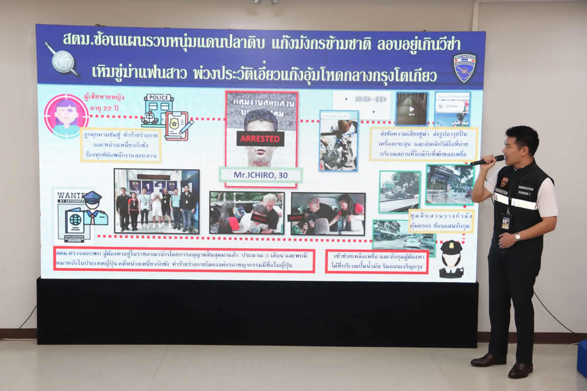 タイ入国管理局は2024年7月10日、日本の犯罪組織に属し、ビザの滞在期限を超えてタイに滞在していたイチロー容疑者(仮名30歳 日本の報道では藤原宇浩容疑者)をバンコクのチャルンクルン87通りにあるPTTガソリンスタンド前で逮捕したと発表しました。容疑者は、元彼女のタイ人女性を殺すと脅迫しており、東京で誘拐事件に関与したことも判明しました。
