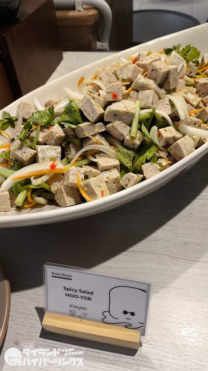 タイ東北のハムであるムーヨーのピリ辛サラダ。