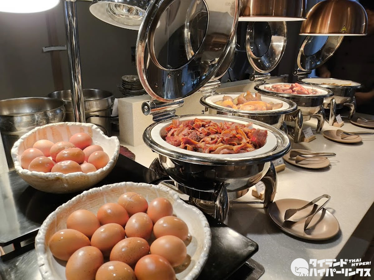 卵料理をオーダーできるエッグステーションをはじめ、洋食、タイ料理の惣菜の数々、また日本人には嬉しい味噌汁などもあり、そんな中でも特にお勧めしたいのが、ウボンラチャタニで親しまれる料理のメニューです。