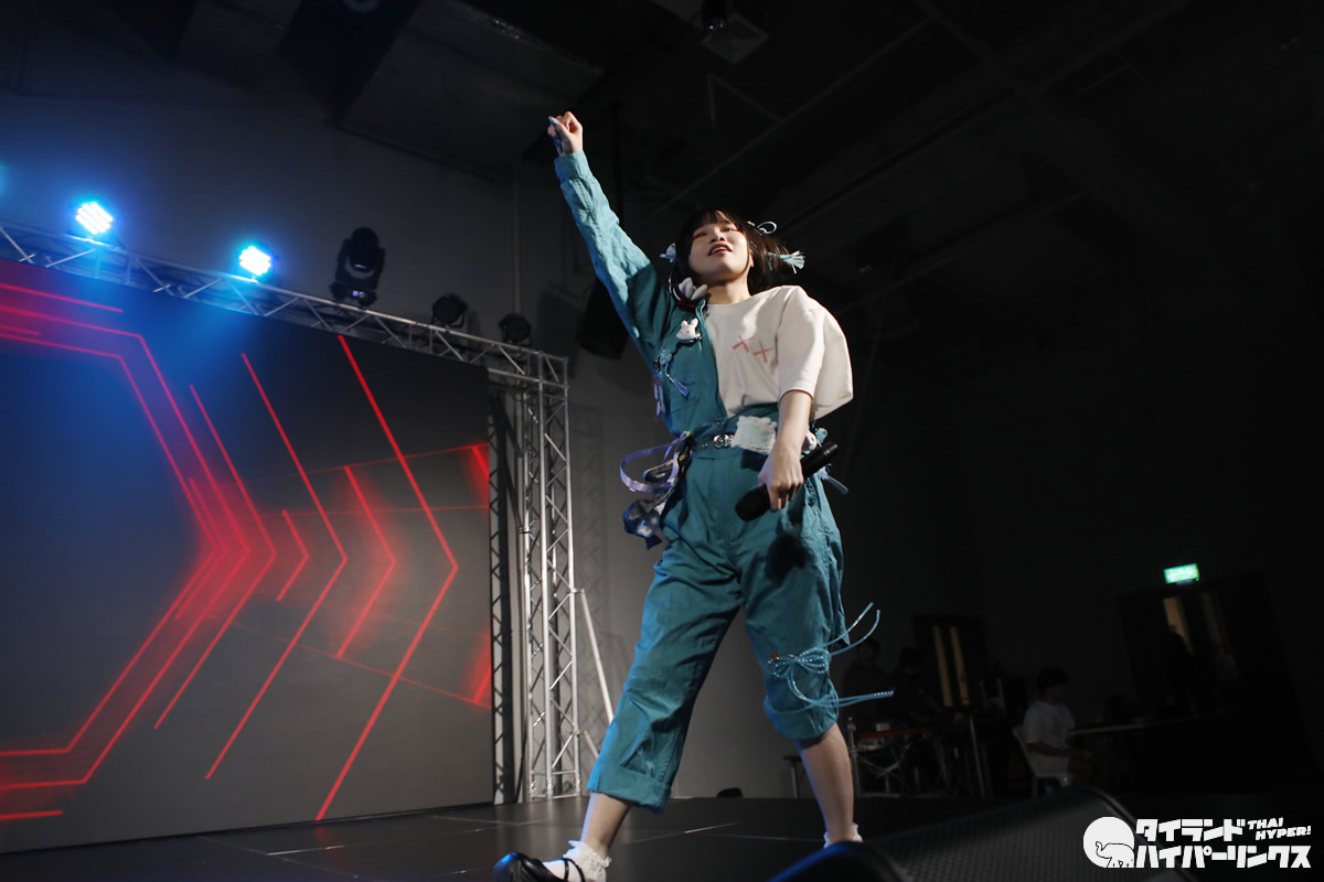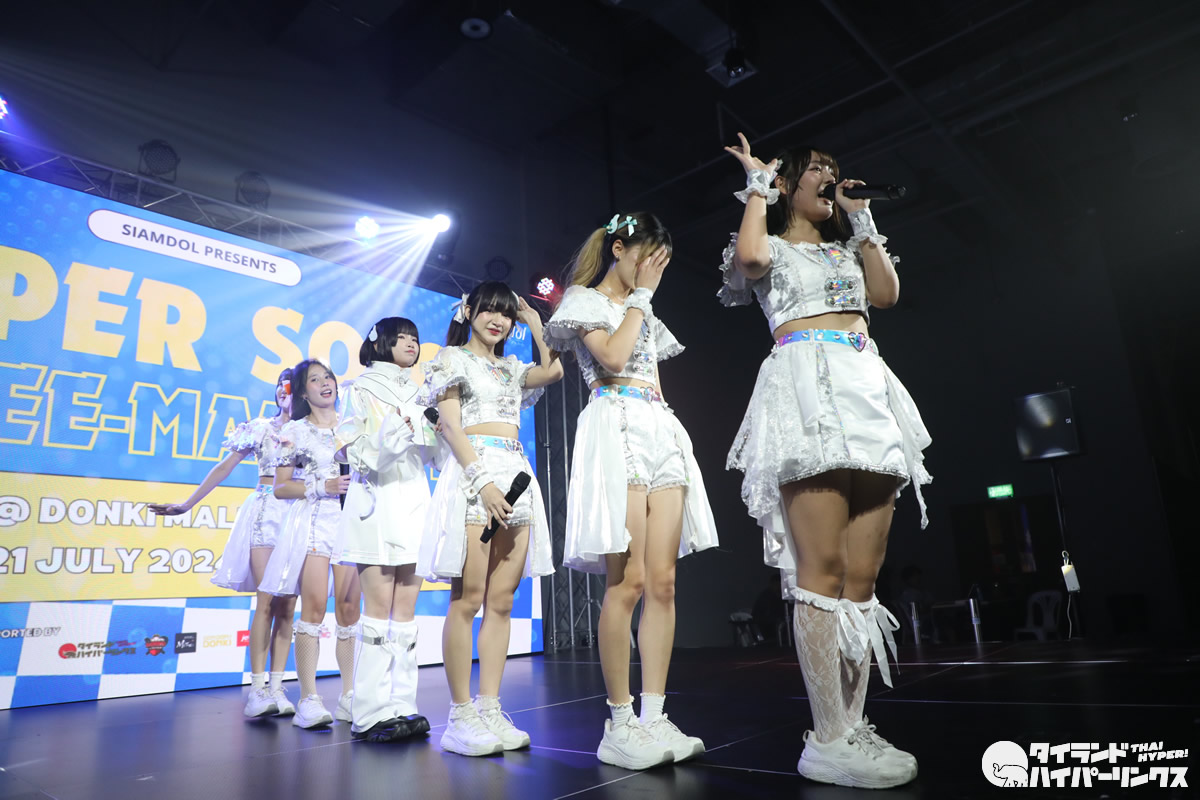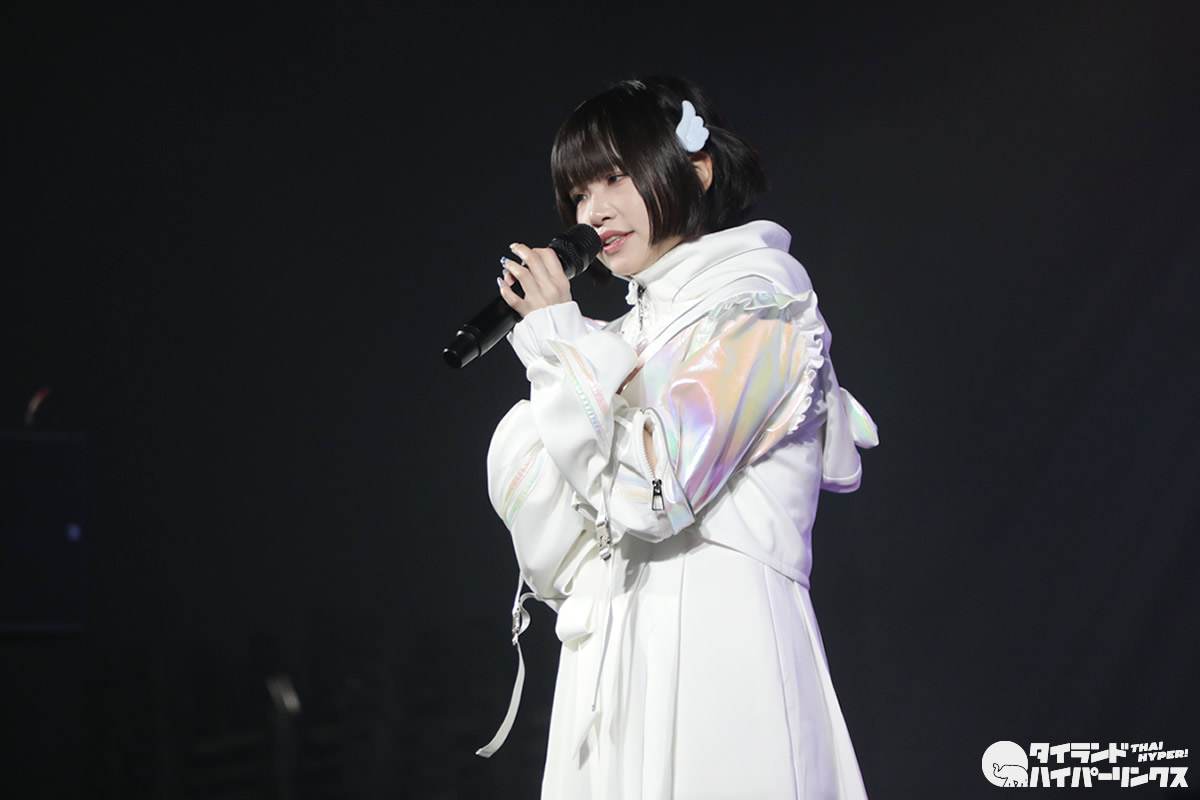 はじめてのタイ遠征となったunaさんは、非常に日本に興味があるということで、日本語の勉強をはじめて1年。MC、そしてオフ会や特典会でも日本語を交えて、日本人ファンとの交流を深めたようです。また『Super Solo Three-man Live』では、オープニングアクトに登場したタイのアイドル Euphonie☆とのコラボも行いました。