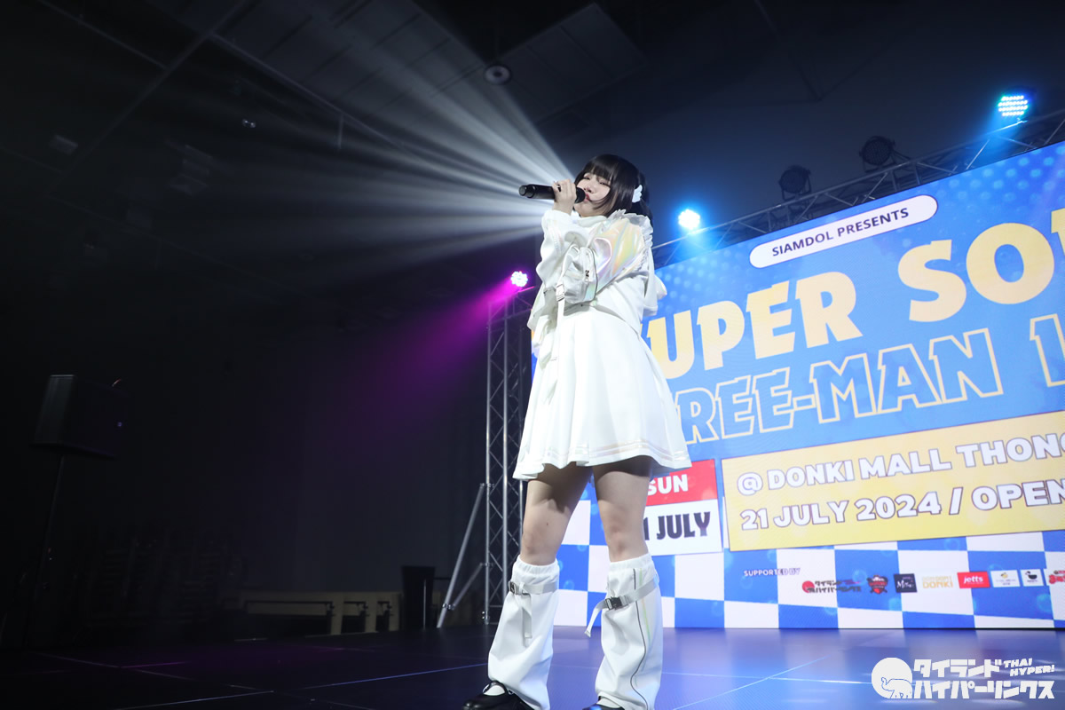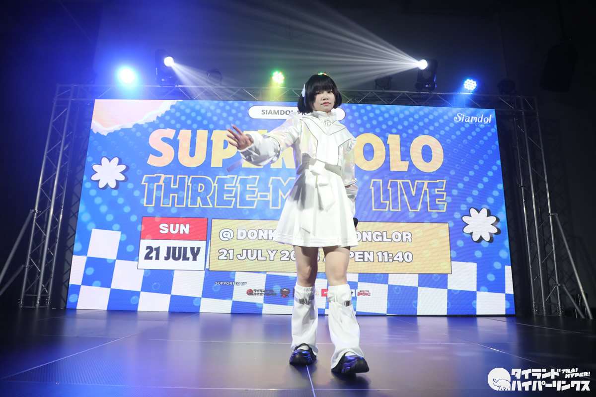 日タイそしてアジア地域のアイドル13組が出演した対バンライブ Siamdol presents『Baby It’s raining outside』が、バンコクのドンキモール・トンローで2024年7月20日(土)に開催。さらに翌日の7月21日(日)には同会場で『Super Solo Three-man Live』が開催され、香港からやってきたソロアイドルのunaさんが出演しました。
