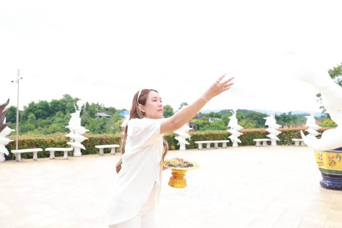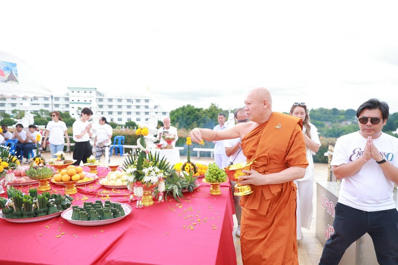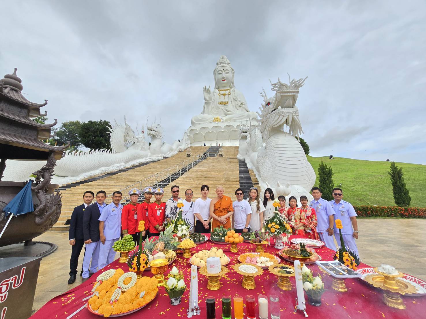 タイ北部チェンライ県の巨大観音像がある寺院ワット・フゥアイプラーカンで2567年7月25日木曜日の午前8時19分より、ドラゴンオーガナイザーグループによるタイ映画「ENDPRESSO ปณิธานหวานน้อย」の撮影を開始するための儀式を行いました。