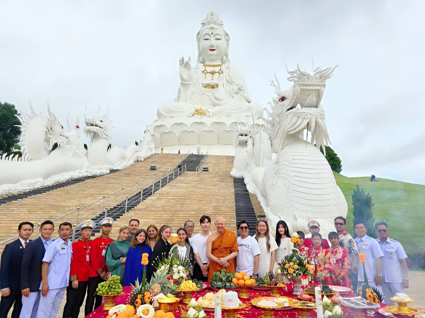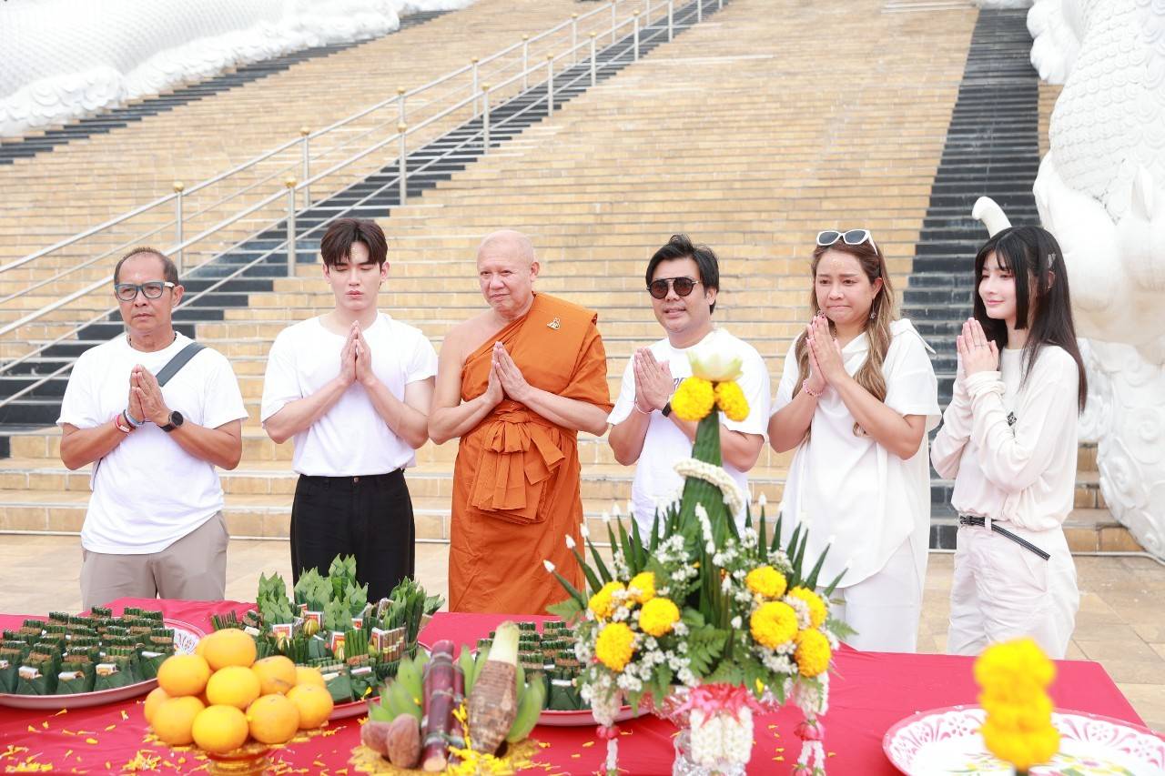 タイ映画「ENDPRESSO」撮影前の儀式をチェンライ県の巨大観音寺院で実施、主演のニュー&メープルも参加