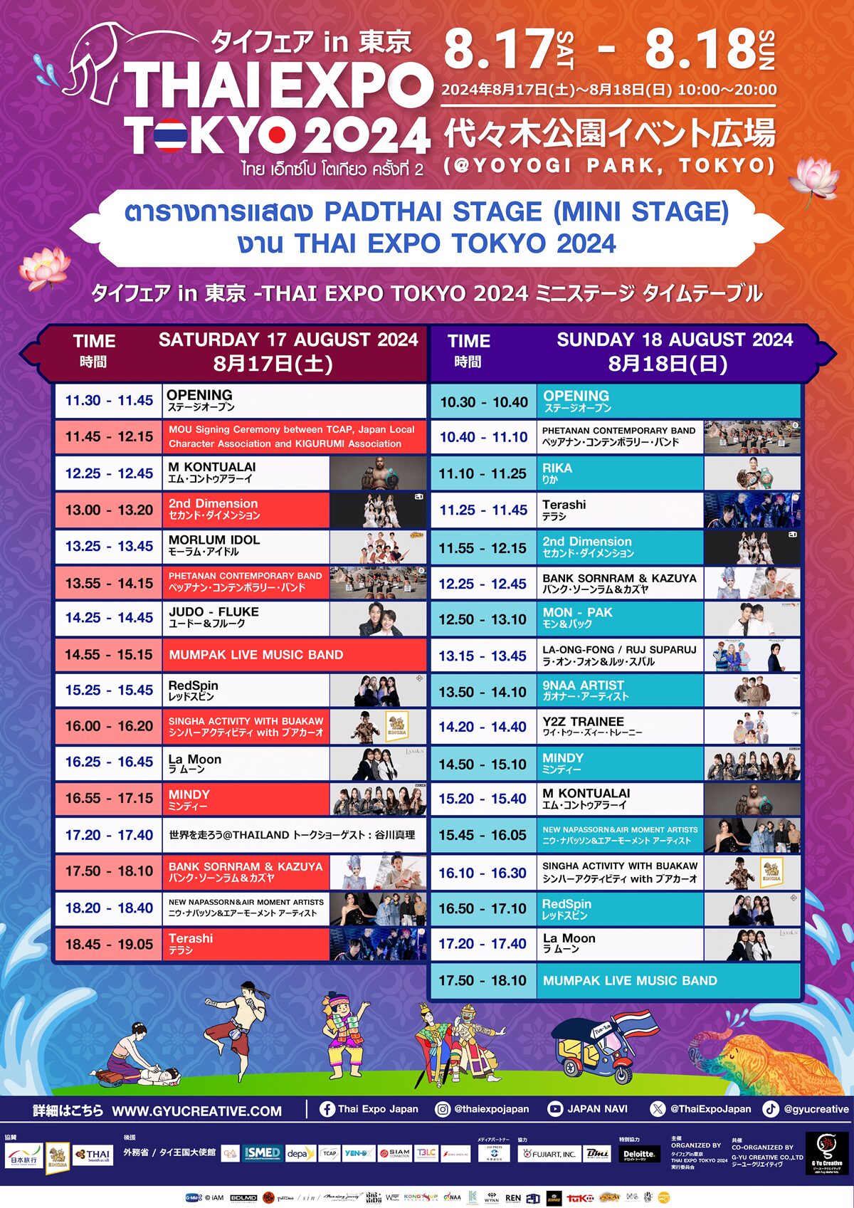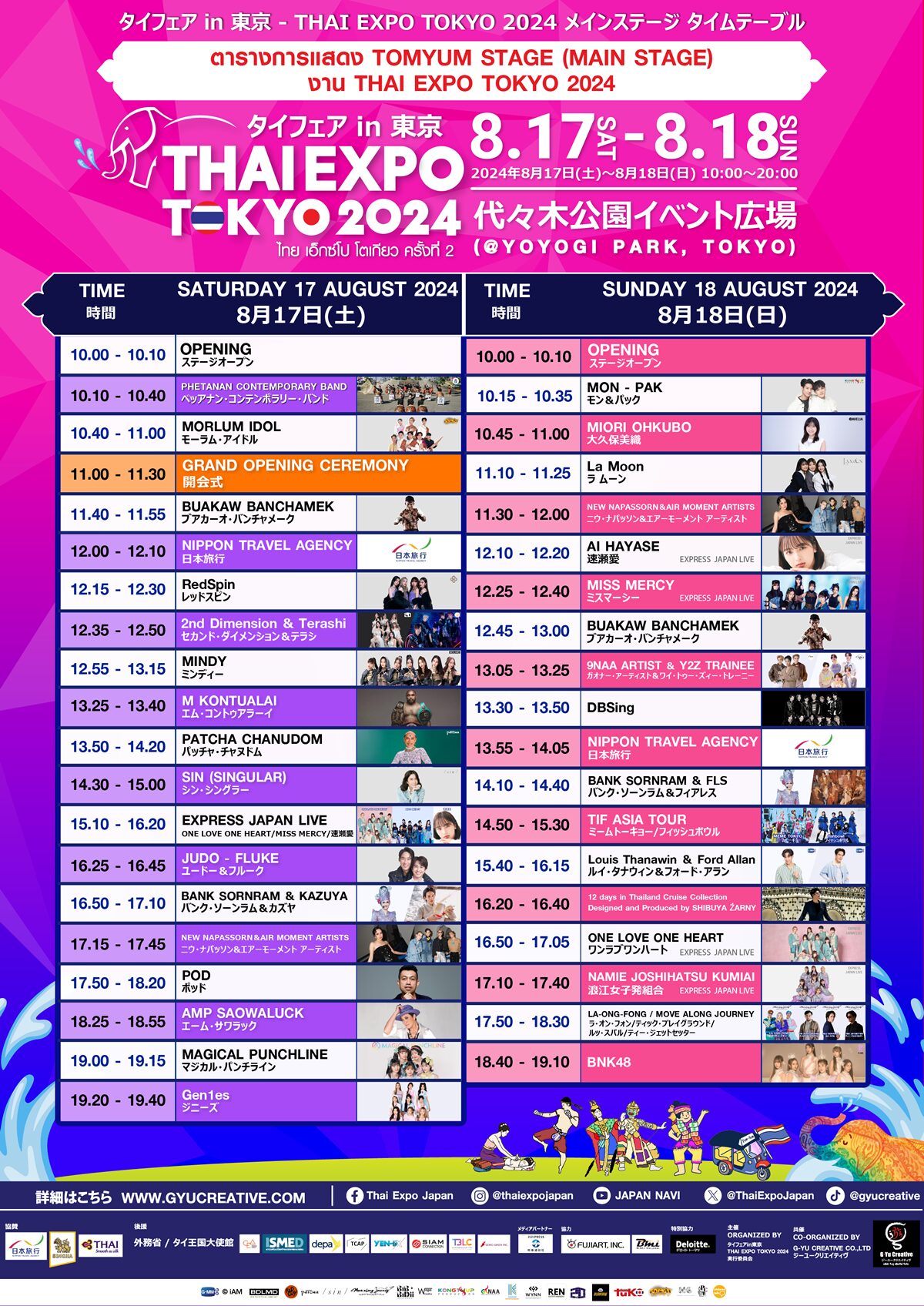 「THAI EXPO TOKYO 2024」出演者&タイムテーブル発表