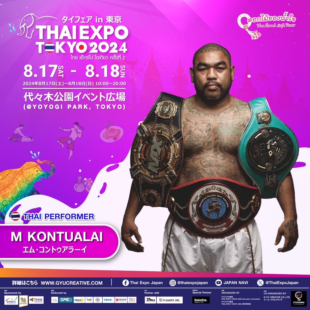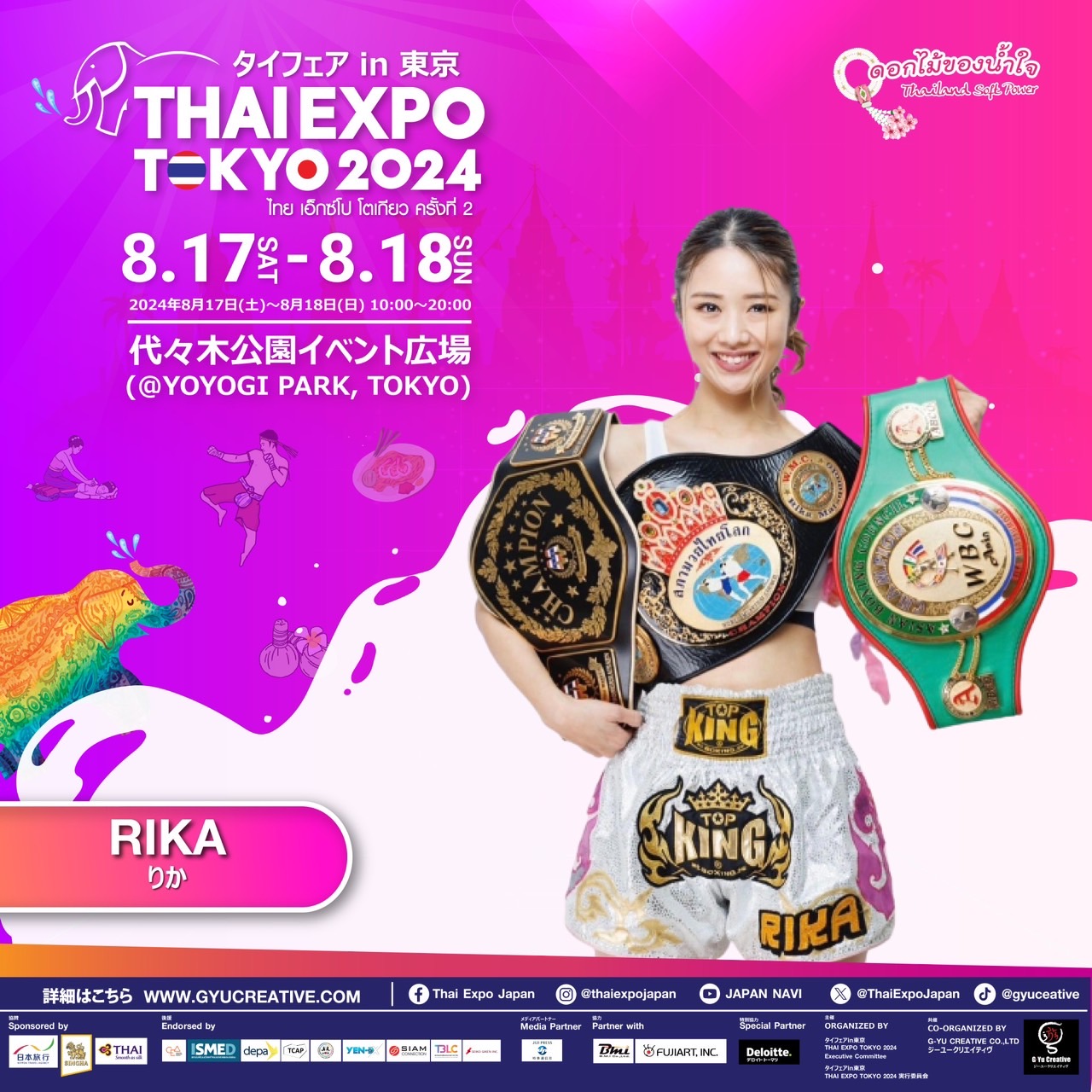 さらに、ボクシングIMSA世界ヘビー級のチャンピオン「M KONTUALAI (エム・コントゥアラーイ)」、元ムエタイ世界王者でタイと日本のハーフボクサー「RIKA (りか)」も出演します。豪華なステージパフォーマンス、ファン向けイベントもお楽しみに。