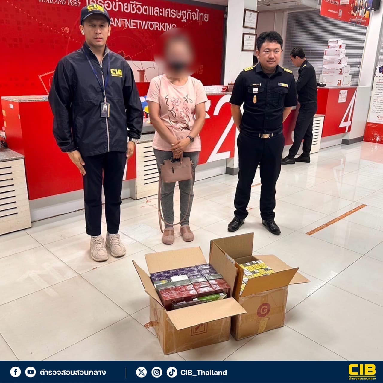 中央捜査局(CIB)は、44歳のパチャラダー容疑者を「税金を支払っていない商品を販売目的で所持していた」罪で逮捕しました。押収場所は、東部トラート県クローンヤイ郡の郵便局です。