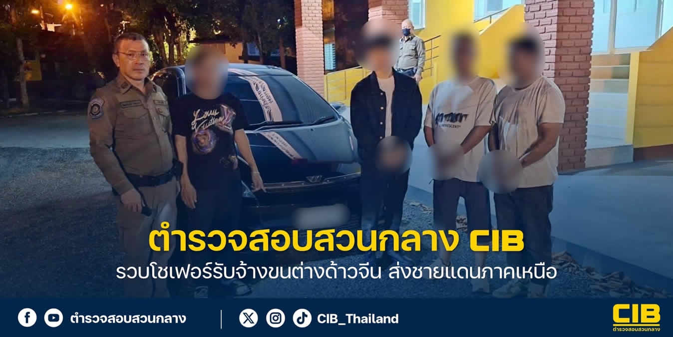発表によると、高速道路警察がターク県とスコータイ県を結ぶ12号線の96-97キロ地点を巡回中、不審な黒い車を発見。すぐに黒い車を追跡し、停車させて検査を行ったところ、タイ人の運転手と中国人の男3人が同乗していました。3人はパスポートを所持しておらず、不法滞在者であると推定されました。