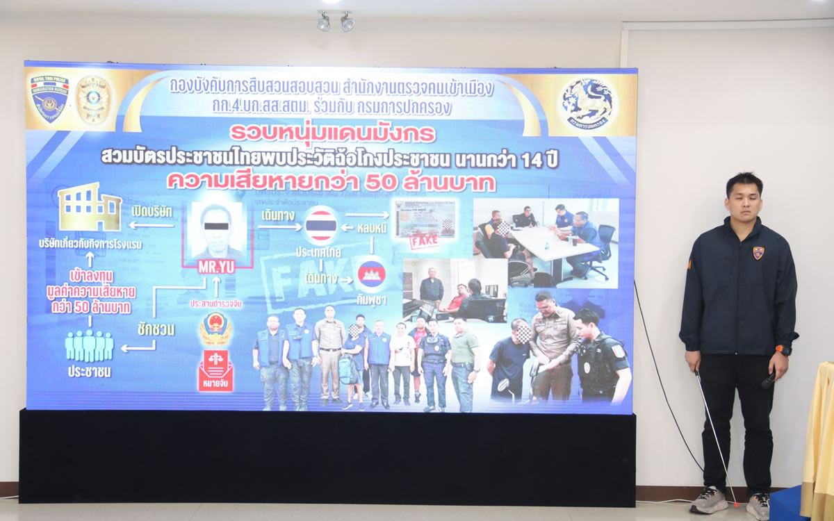 タイ入国管理局捜査部第4課が関係機関と連携して捜査を進め、内務省が「ヨンユット」という名前を住民登録から削除。その後、裁判所の令状に基づいてYu容疑者の居住地を捜索し、彼を逮捕しました。Yu容疑者は取り調べに対し、身分証を不正に取得し、長期間にわたりタイに滞在していたことを認めています。