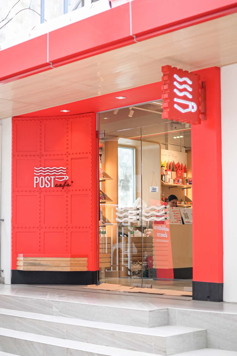 「POST Café สามเสนใน」は、「Cups of Connections」というコンセプトのもと、人々が自由に集まり、交流できる空間を提供しています。カフェはシンプルで温かみのあるデザインを採用し、郵便局の象徴である赤と白のカラーを取り入れた内装が特徴です。また、家具には切手のデザインや、郵便物に使われるスタンプのモチーフが施されており、来店者は郵便局の雰囲気を感じることができます。