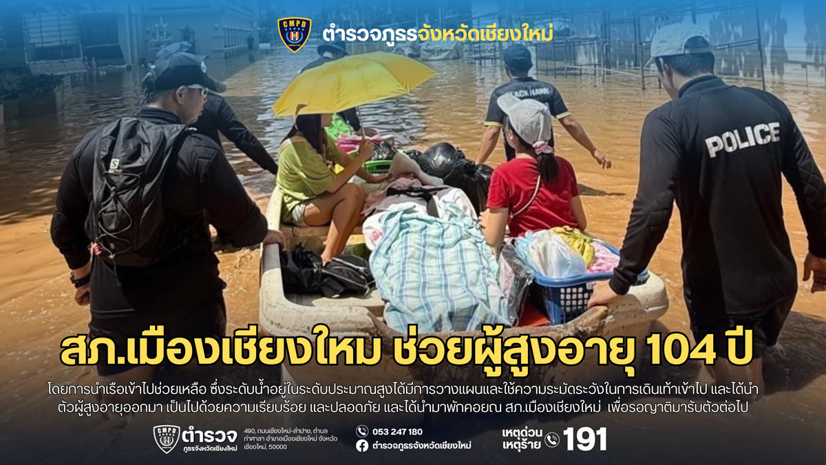 タイ北部チェンマイで発生した洪水の中、2024年10月6日朝に警察が104歳の寝たきり男性を無事救出しました。チェンマイ警察署にナイトバザール地域の住民から緊急通報が入り、男性が自宅の2階に取り残されていることが判明し、警察官らが出動しました。