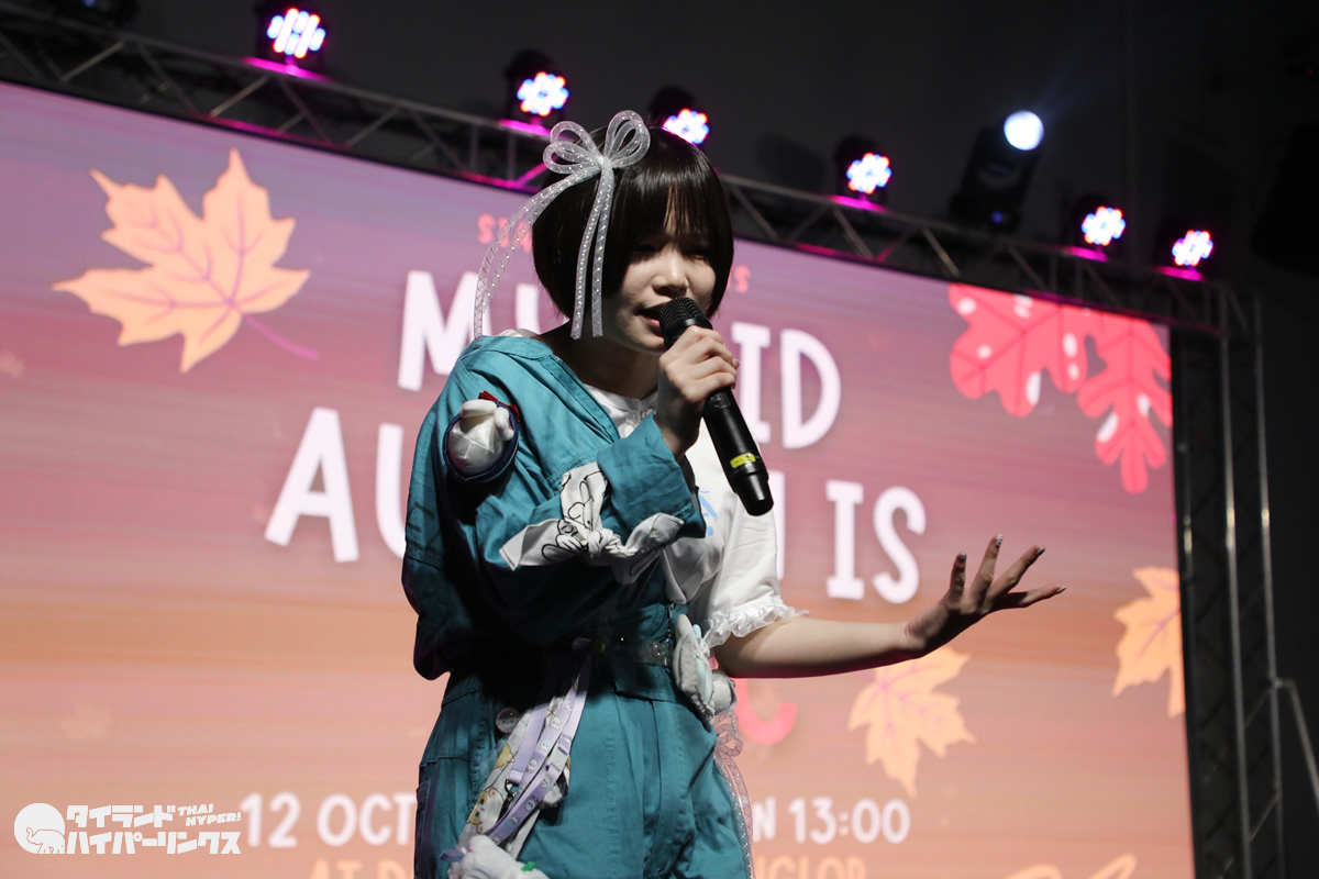 unaのタイ遠征は、先の7月に続いて約3ヶ月ぶり2度目。現在アイドル活動を行いながらファションのデザインも勉強中です。また日本にも非常に興味があり、日本語の勉強をはじめて1年。この日は全て日本語の曲を披露しました。
