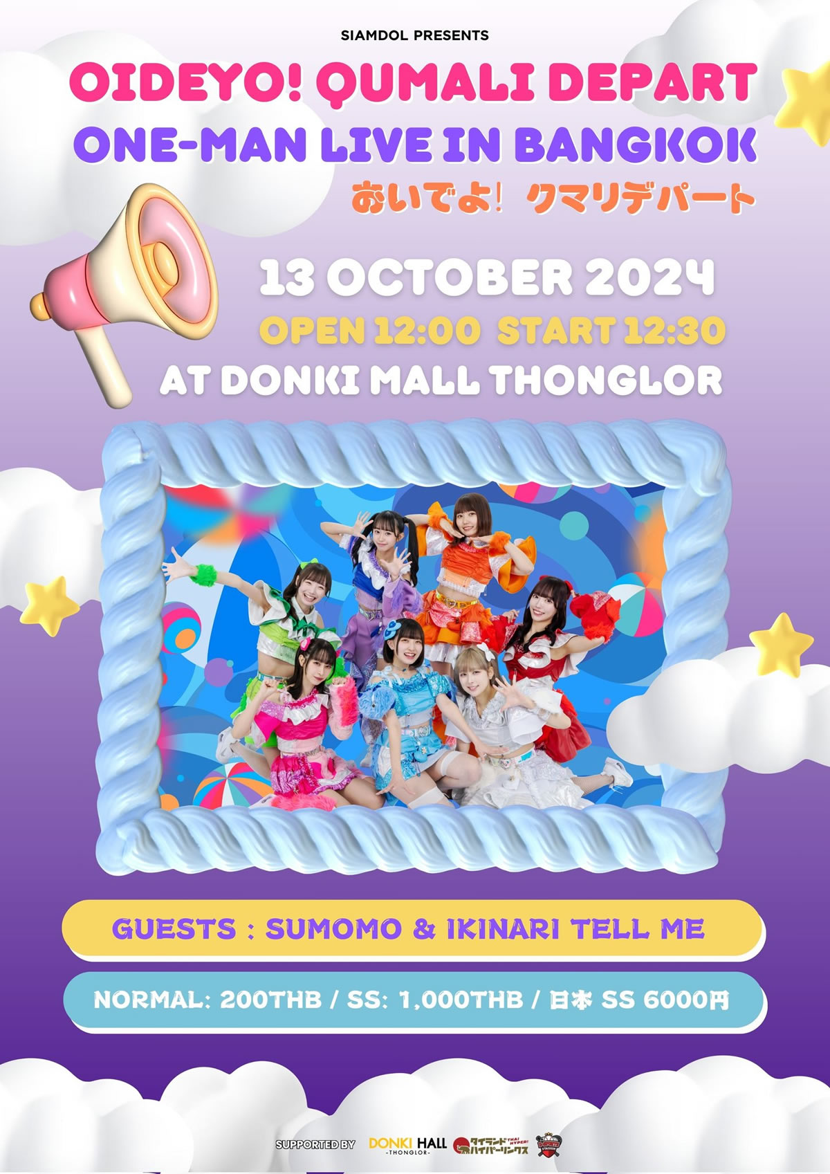 クマリデパートが2024年10月13日(土)、タイ・バンコクのドンキホール(ドンキモール・トンロー4階)でワンマンライブ「Oideyo! Qumali Depart One-man Live in Bangkok」を開催しました。