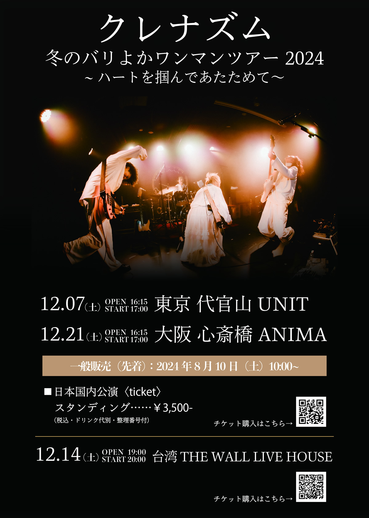 香港初ライブとなる10/31~11/3で開催される「HKT☓WESTK POPFEST 2024」の出演も決定し、11/22~24で開催される台中最大フェス「Roving Nation Fes 2024」 の出演も決定。アジアでめざましく飛躍するクレナズムの国内でのライブを見逃すな。