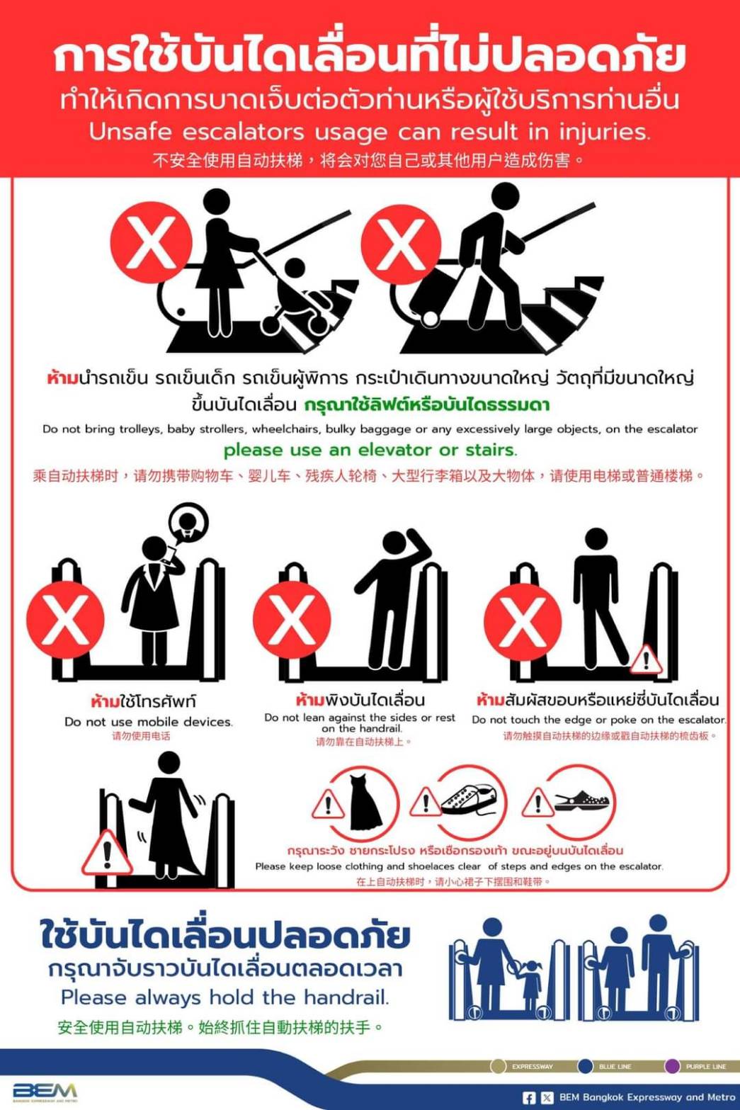 2024年10月25日、MRT(Mass Rapid Transit Authority of Thailand)とBEM(Bangkok Expressway and Metro)は、フリ―ランナーがMRTワットマンコン駅のエスカレーターの手すりを使って滑り降りる危険な行為を撮影した動画をSNSで投稿したことに対し、法的措置を取る方針を発表しました。この動画には「สไลด์เดอร์ + MRT + FREERUNNING #ฟรีรันนิ่ง #สไลด์เดอร์ #MRT #กดติดตาม #Reels」などのハッシュタグが添えられており、一般乗客に不安を与えたと報じられています。
