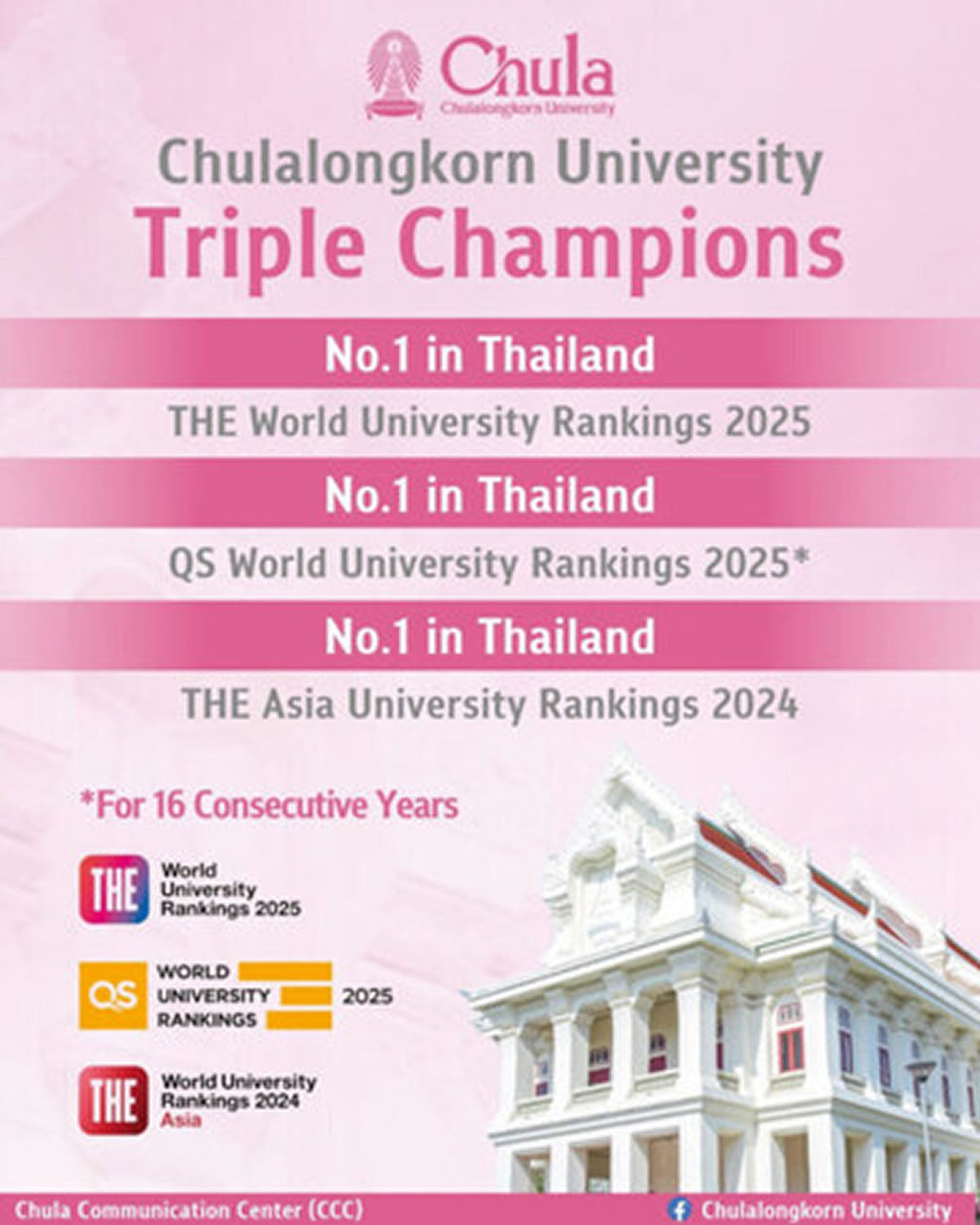 この素晴らしい成果は、チュラロンコン大学の伝統をさらに発展させ、優れた学問業績と協力的なパートナーシップを通じてイノベーションを推進し、世界的な影響力を生み出し続けています。