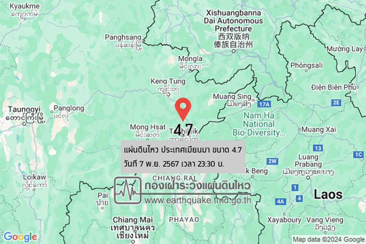 2024年11月7日夜11時30分(タイ時間)、ミャンマー東部でマグニチュード4.7の地震が発生しました。震源の深さは7キロ。