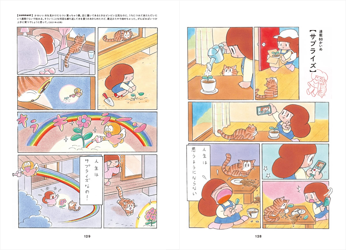 ピュアで素直な女の子のキャラクター「マムアンちゃん」。本作は『リンネル』のために描きおろした猫のキャラクター「ララちゃん」との暮らしを中心に話が進みます。なにげない日常で描かれる小さな幸せや、ファンタジーな場面で表現される本質的な大切なこと。ハッピーに生きるためのメッセージを、マムアンちゃんはどんなときもチャーミングに語りかけてくれます。今作が初登場となったララちゃんと、マムアンちゃんとのやりとりも見どころです。回を重ねるにつれて猫との暮らしが長くなり、ふたりの関係性はもちろん、猫の描写もますます豊かに。実際に愛猫たちと暮らすタムくんならではの視点や表現は格別です。