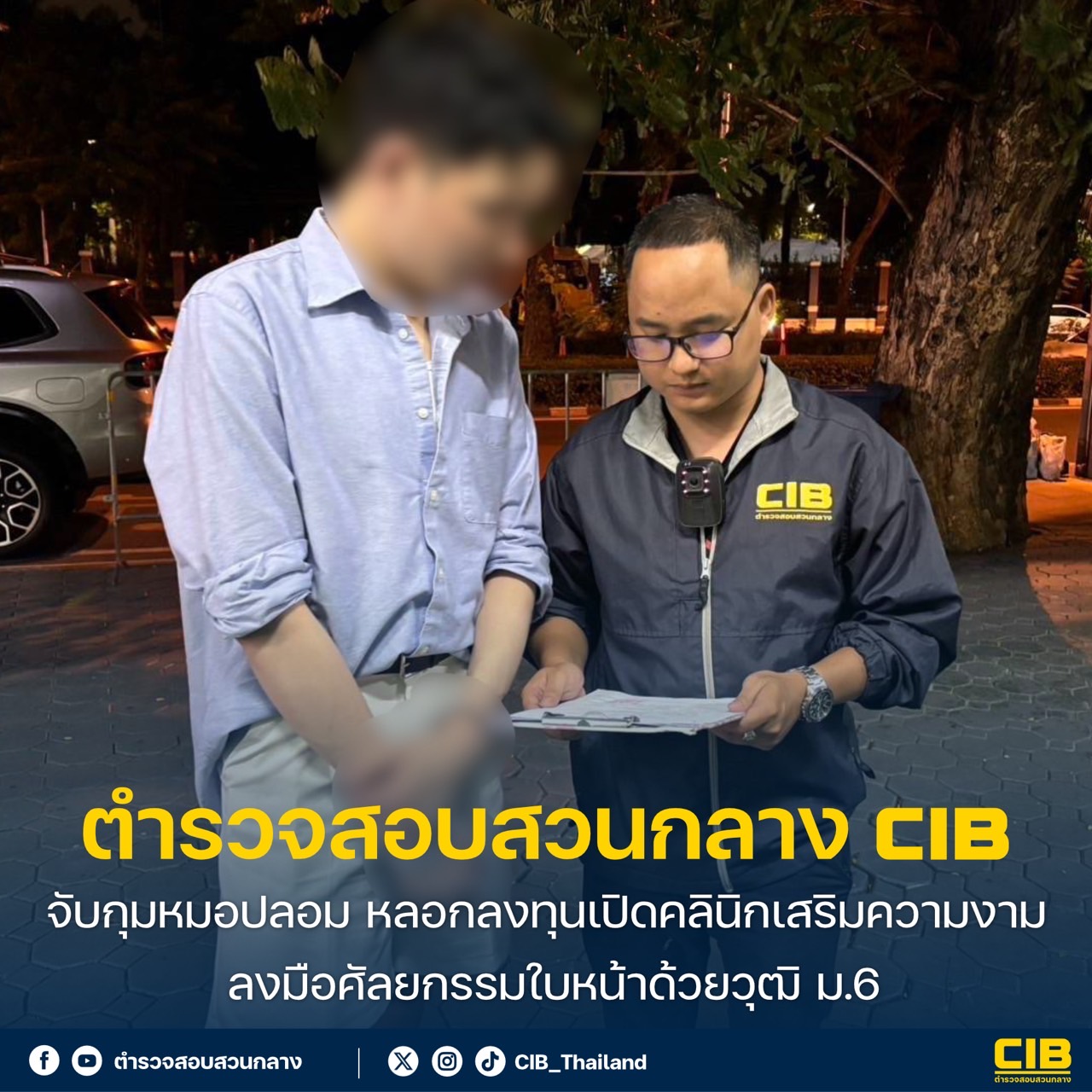容疑者は美容外科医を装い、被害者に対して「美容クリニックの開業に投資すれば利益を得られる」と偽り、約300万バーツを詐取していたことが判明しました。また、容疑者は顔面整形手術を行う能力があると称し、一部の被害者からさらに金銭を受け取っていたとされています。しかし、後の調査により、容疑者が医師資格を一切持たないことが明らかになりました。