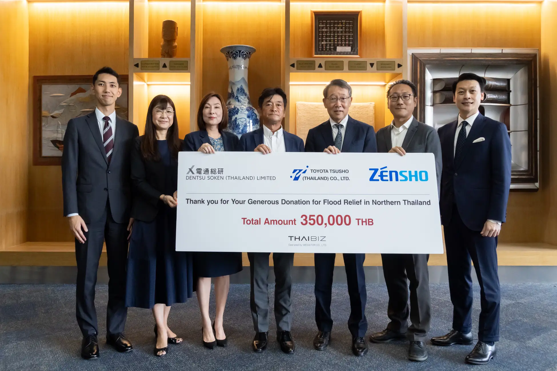 Mediator Co., Ltd.が運営するメディア「THAIBIZ」は、10月に洪水被災地支援のため協力企業を募集。10日間という短期間で、Toyota Tsusho (Thailand) Co., Ltd.、Dentsu Soken (Thailand) Limited、ZENSHO (Thailand) Co., Ltd.の3社から合計35万バーツの支援金を集めました。この支援金は、国連難民高等弁務官事務所(UNHCR)を通じ、チェンライ県の被災者支援に充てられました。