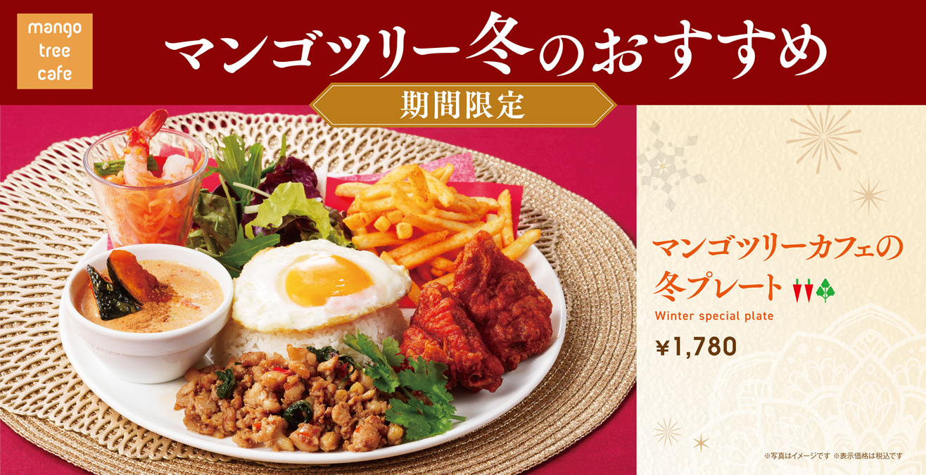 タイ・バンコクに本店をもつ「マンゴツリー」の姉妹店で本格タイ料理を日常的に楽しめる「マンゴツリーカフェ」では、2024年12月4日(水)より期間限定で「マンゴツリーカフェの冬プレート」を販売開始します。
