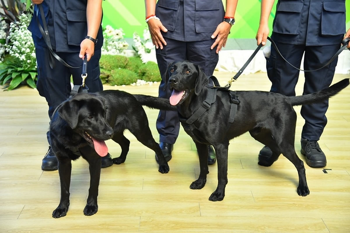 今回寄贈された薬物捜索犬はラブラドール・レトリバーの2頭で、名前は「Viking(バイキング)」と「Paddy(パディ)」。これらの犬は税関局の捜査・取締活動を支援するため、薬物検知訓練を受けて得た特別な能力を持っています。