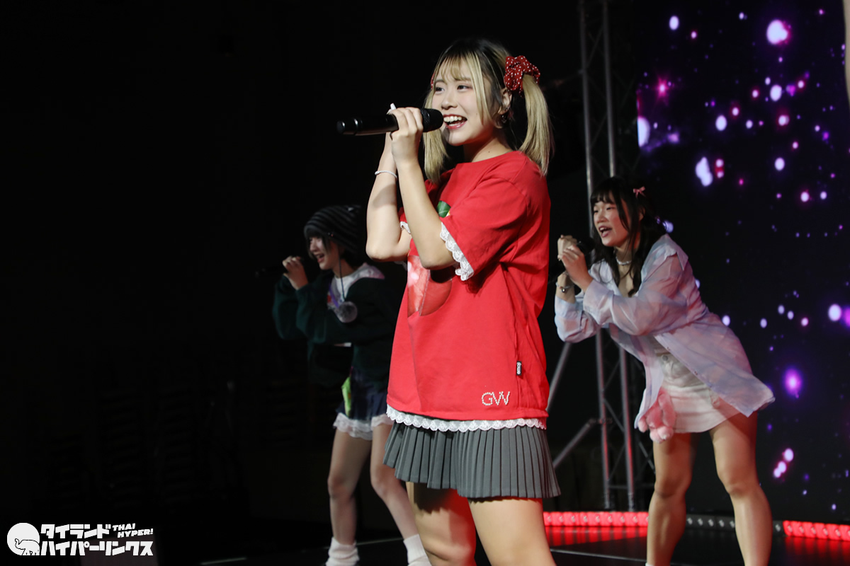 タイ、そして日本とベトナムからのアイドルが出演した対バンライブ「Bloomers Party」が、2024年12月8日(日)に、バンコクのドンキホール(ドンキモール・トンロー4階)で開催されました。3番手で登場したのはIkinari Tell Me(いきなりテルミー)です。