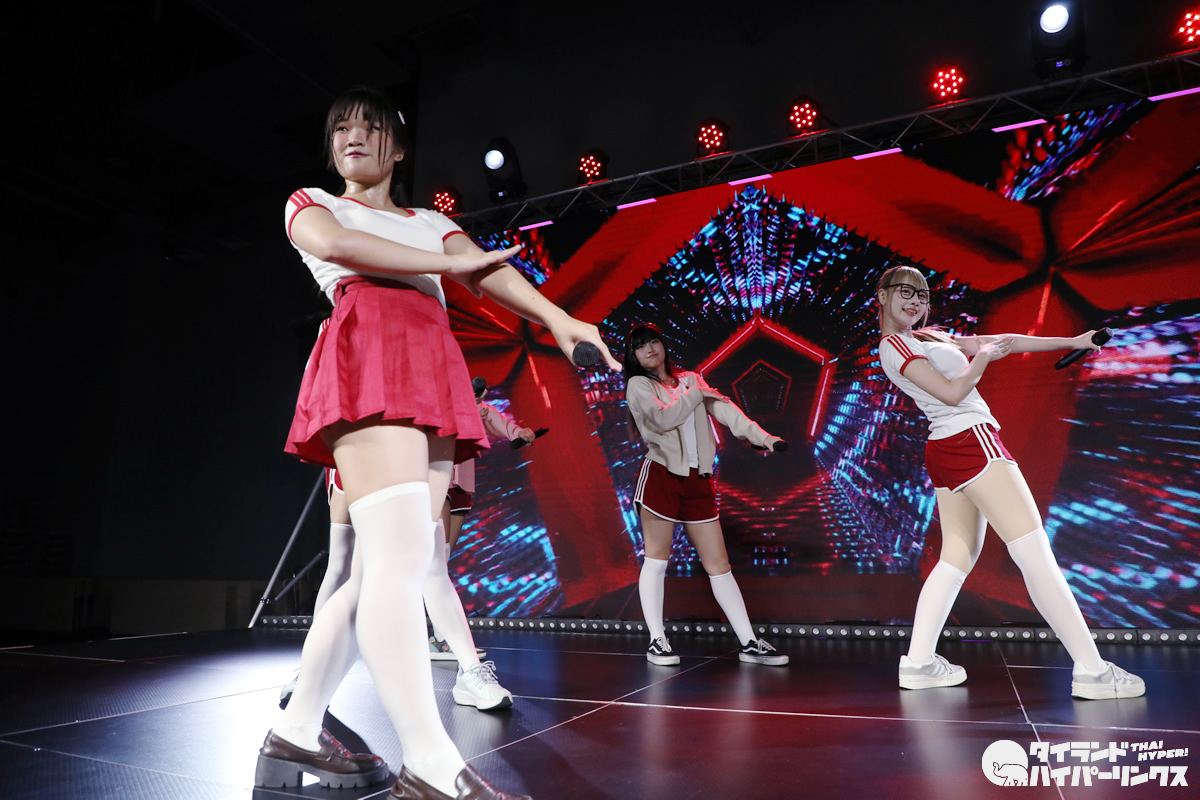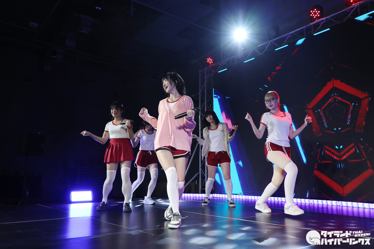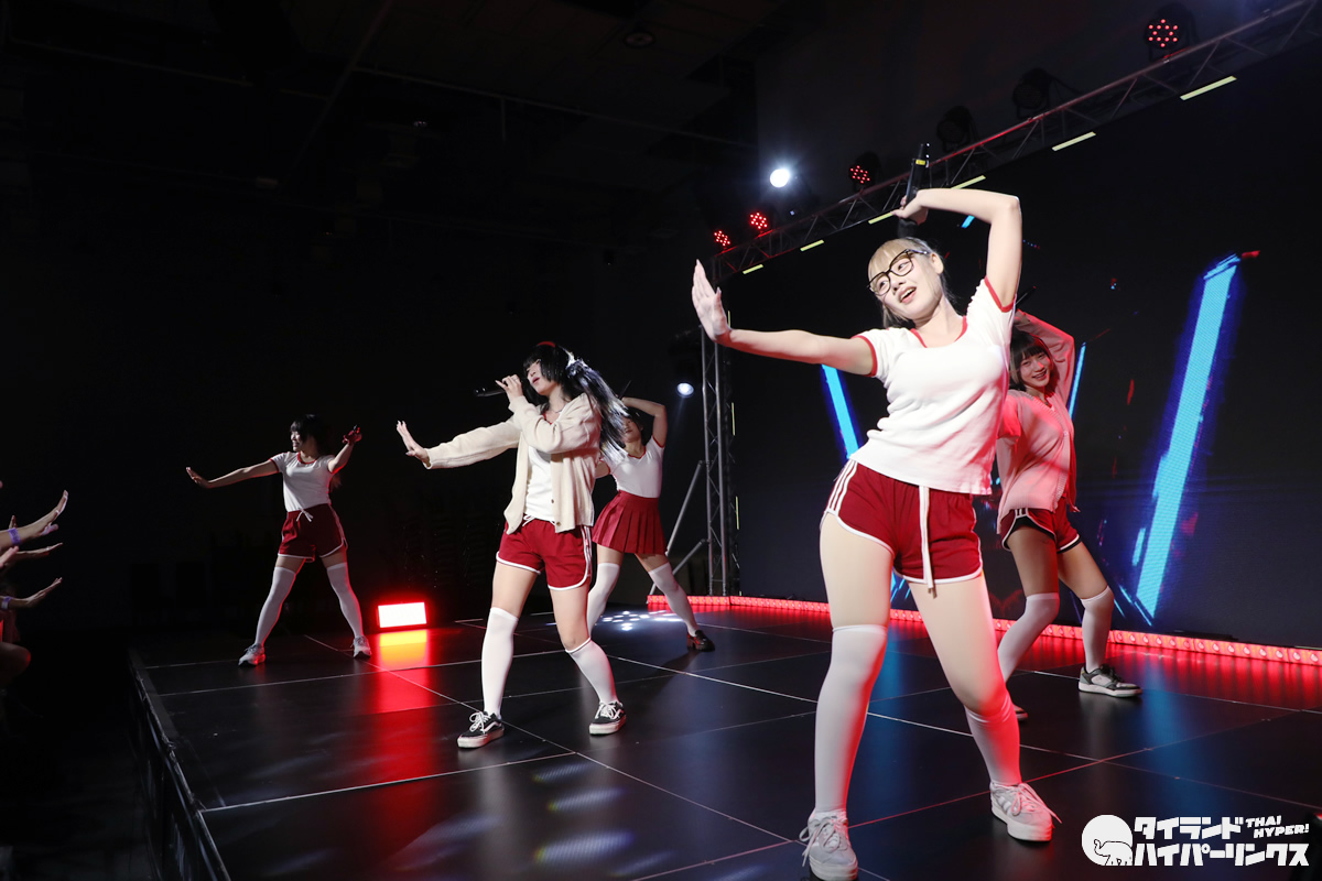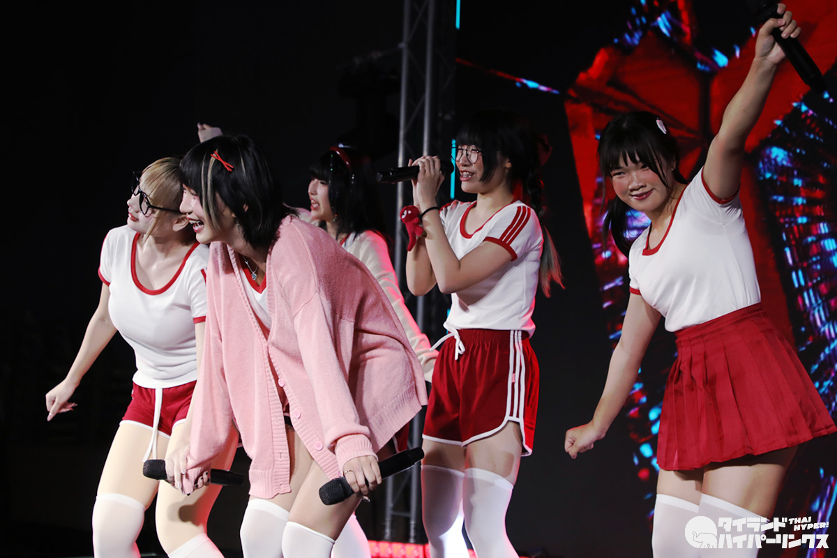 「Bloomers Party」ということでブルマがテーマとなり、Ikinari Tell Meのメンバー達は、体操服姿でパフォーマンスを披露しました。なお、この日は日本人メンバーのめりがお休みで、5人でのパフォーマンスとなりました。