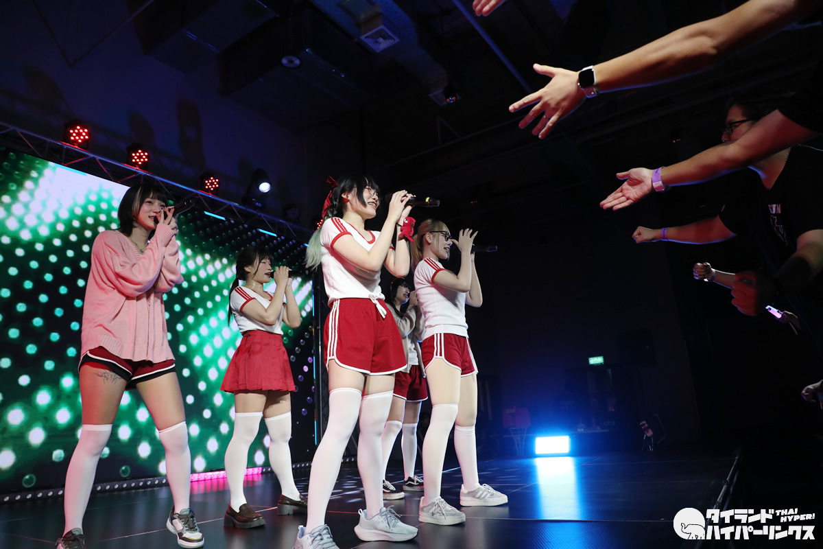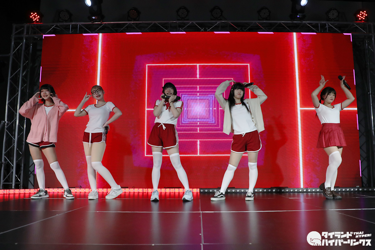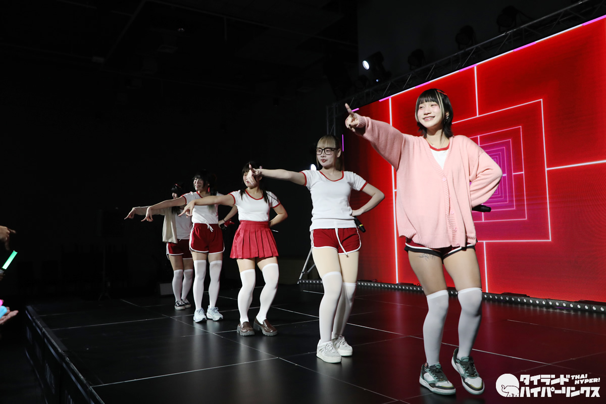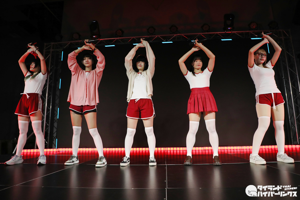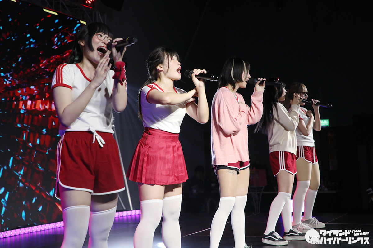 「Bloomers Party」ということでブルマがテーマとなり、Ikinari Tell Meのメンバー達は、体操服姿でパフォーマンスを披露しました。なお、この日は日本人メンバーのめりがお休みで、5人でのパフォーマンスとなりました。