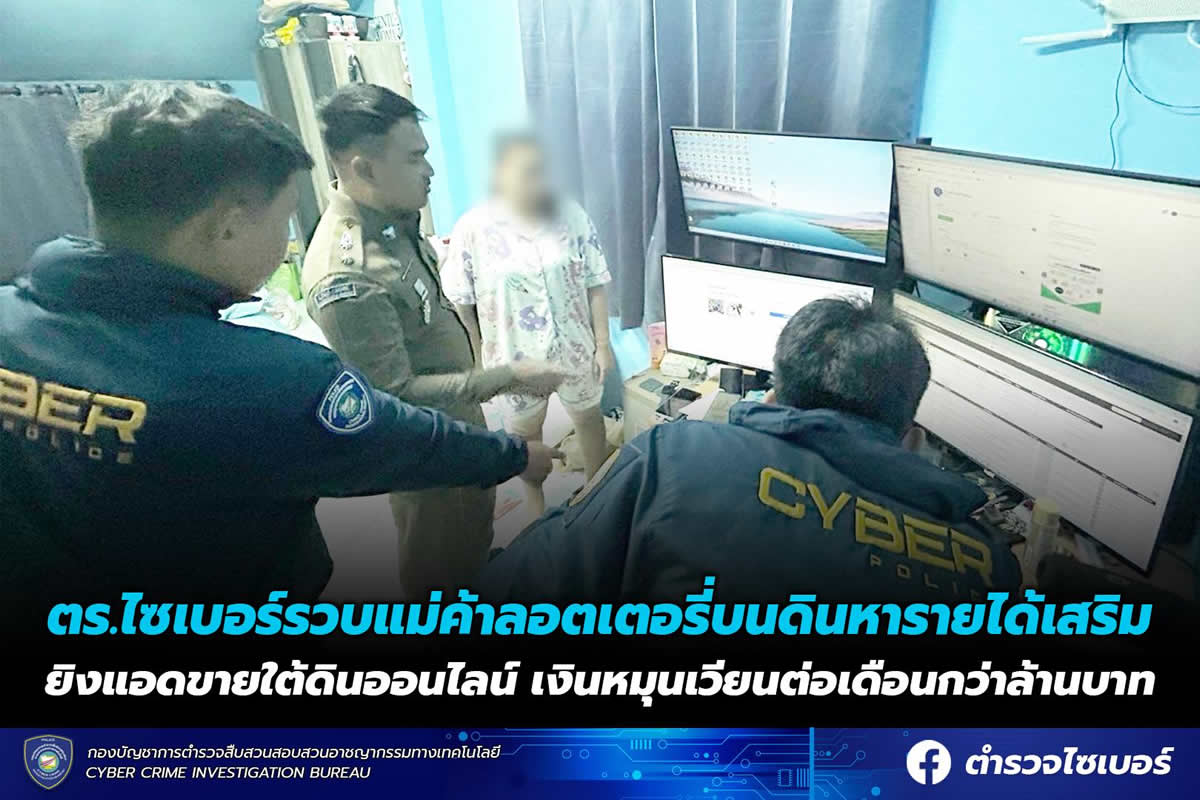 タイ警察中央捜査局傘下のサイバー警察は2024年12月12日、違法なラオス宝くじのオンライン販売に関与していた女を摘発したと発表しました。同容疑者はチェンライ県メーサイ郡で合法的な宝くじ販売を行う一方、副業としてラオス宝くじや地下宝くじをオンラインで販売し、月間の取引額は100万バーツを超えていたことが明らかになりました。