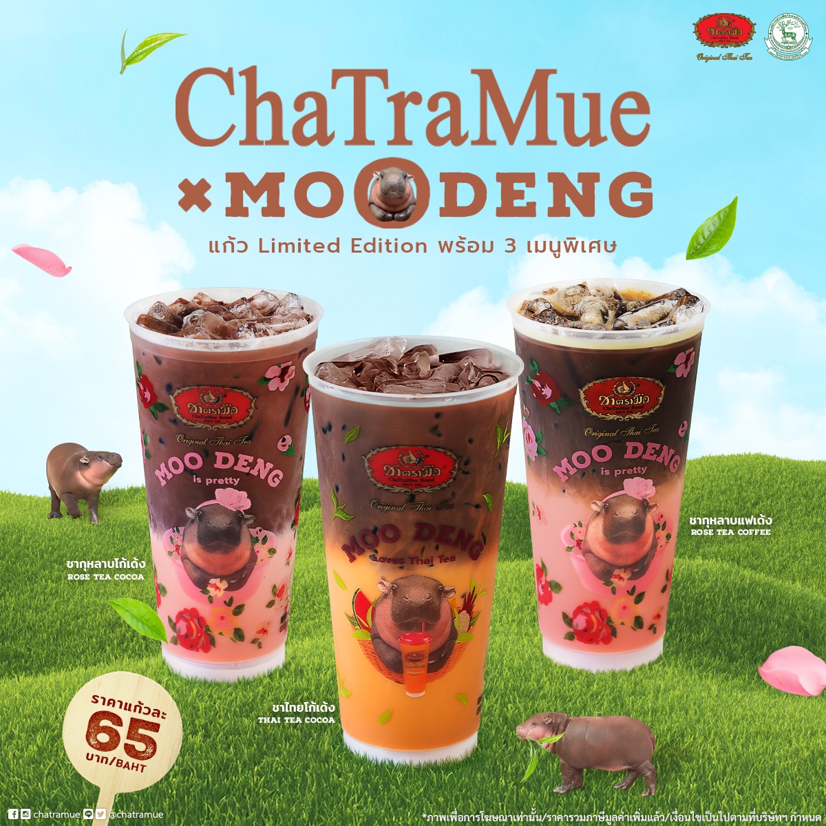 タイ東部チョンブリ県のカオキアオ動物園で2024年7月に生まれたコビトカバの女の子の赤ちゃんの名前はムーデン(หมูเด้ง)。日本語で言うと「肉団子」。あまりの愛らしさに大人気となり、同動物園の集客に大きく貢献しています。そんなムーデンが、人気タイ紅茶(タイティー)店「チャトラムー(ChaTraMue)」のカップになりました。
