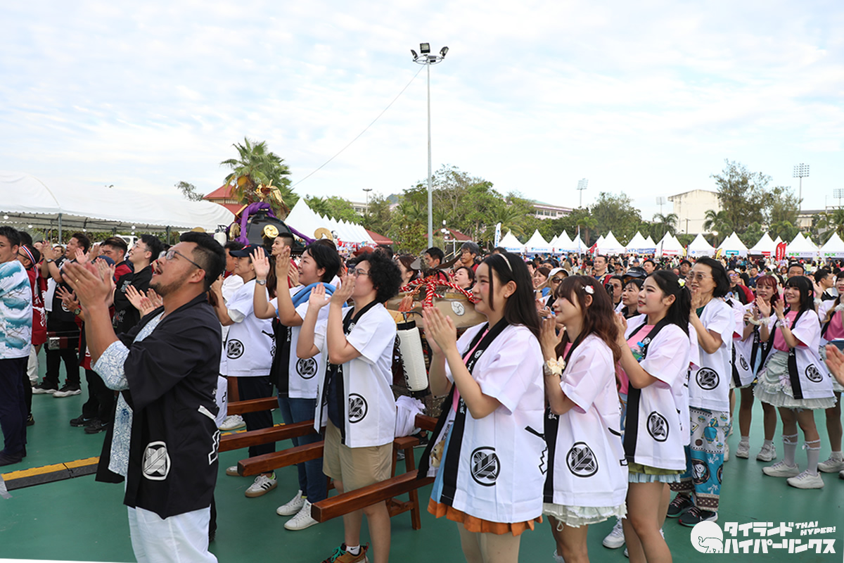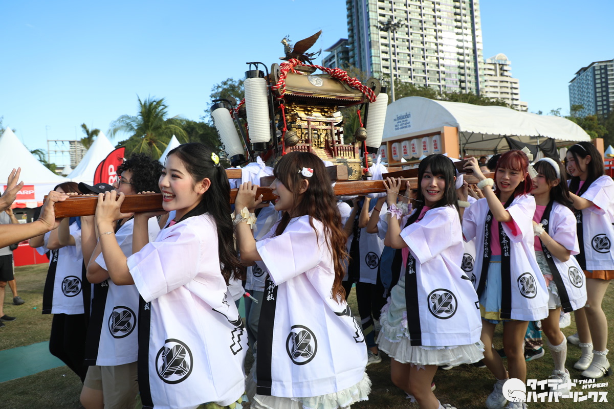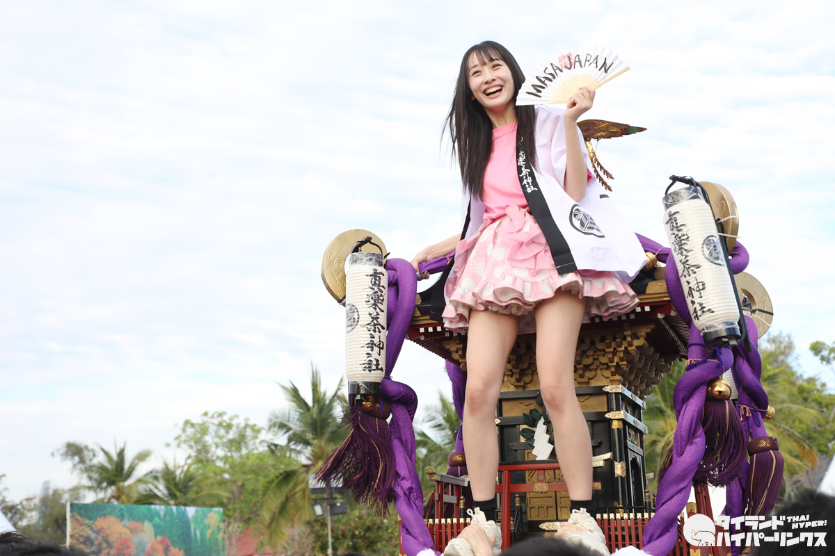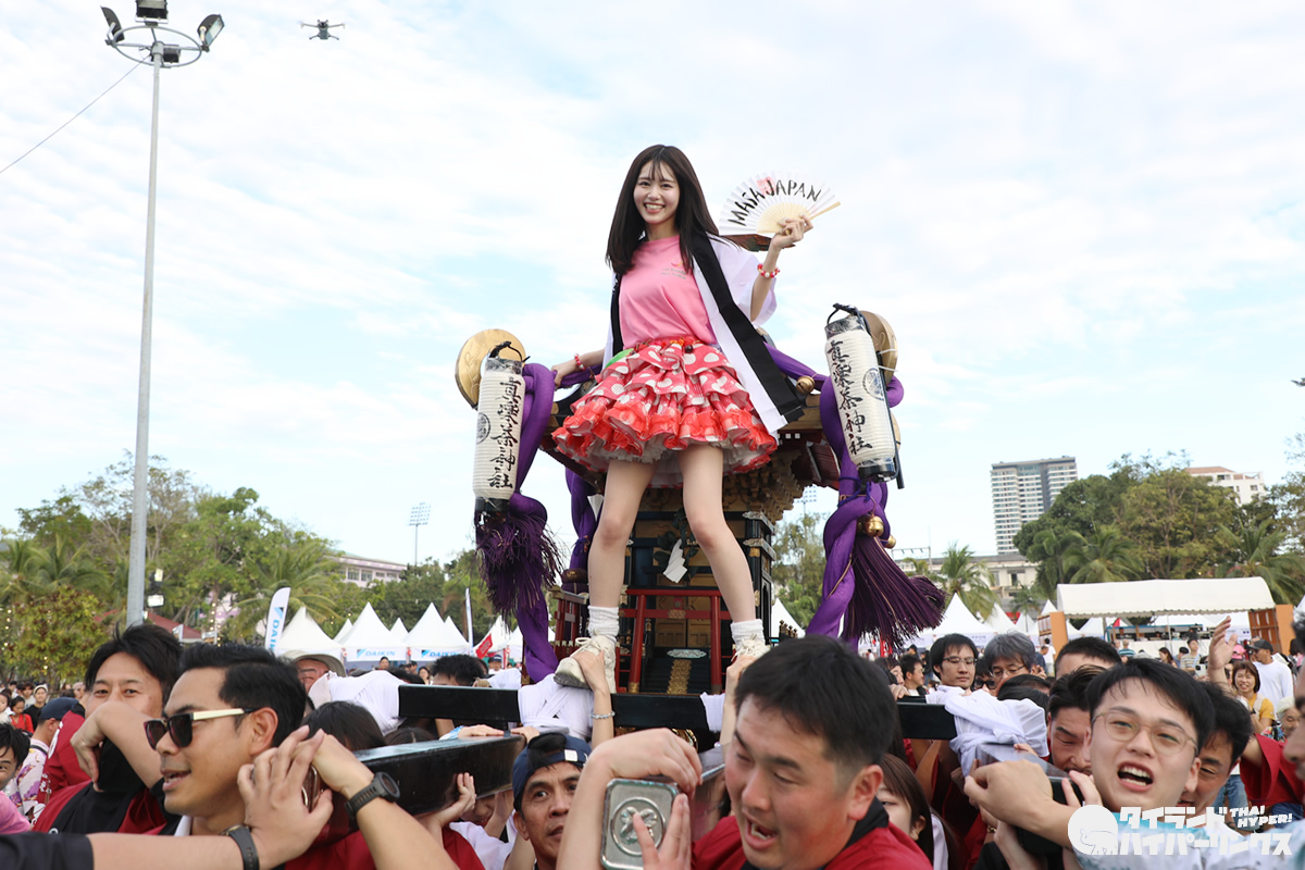 シラチャには、真楽茶神社(シラチャ神社)が建立されたことで、2023年からは本物の御神輿が「シラチャ日本祭り」登場。この日はゲストとして招かれた「香水」で知られる瑛人さん、お祭りアイドルグループ FES☆TIVE、元AKB48のメンバーで演歌歌手の岩佐美咲さん、タイのアイドル SumomoとEuphonie☆が参加しています。