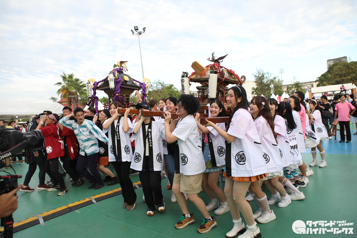 大盛況の中で御神輿が終了。このあとはステージイベントが続き、トリを飾ったダー・エンドルフィンのコンサートでは、観客の熱気が最高潮に達しました。「第13回 シラチャ日本祭り」は、タイと日本の絆を感じる特別な2日間となりました。