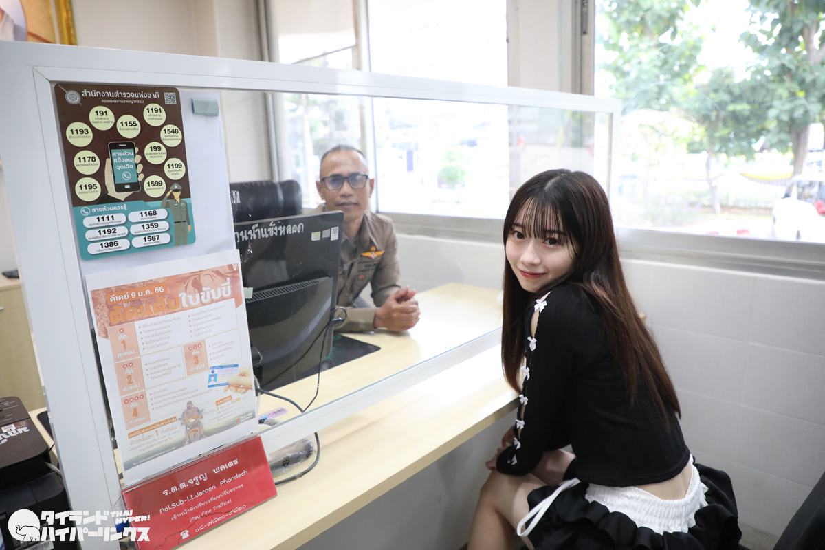 ここはタイ東部チョンブリ県シラチャにあるタイ警察シラチャ署。日本のお祭りアイドル FES☆TIVEメンバーの与田理央那さんが、罰金支払い窓口で警察官と対峙しているのですが・・・。