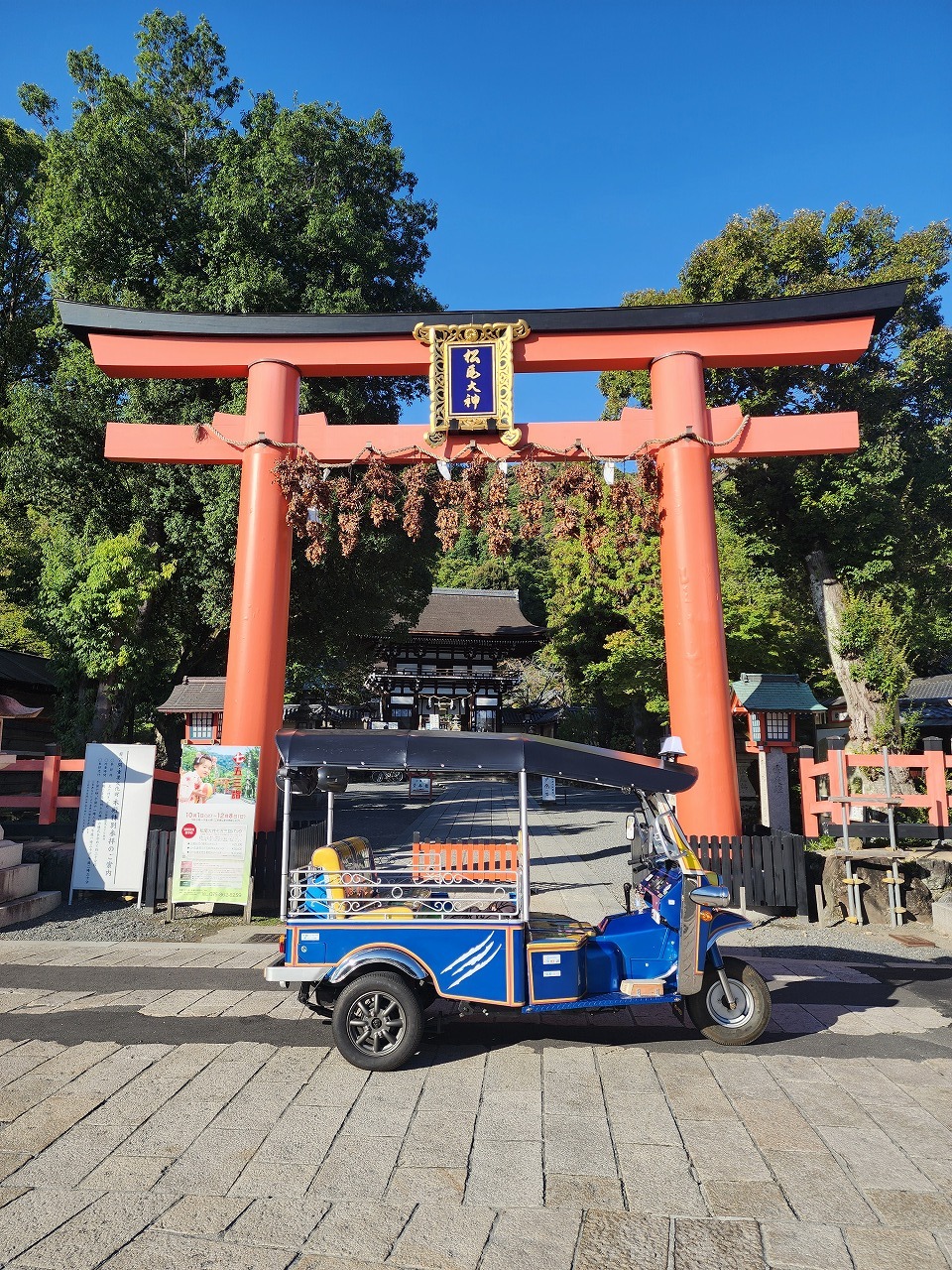 屋根付きのオープンスタイルで、京都の街並みや風を直接感じられるのが最大の魅力。4人乗りの車両で、家族や友人との観光にぴったりの新しいレジャー体験を提供します。
