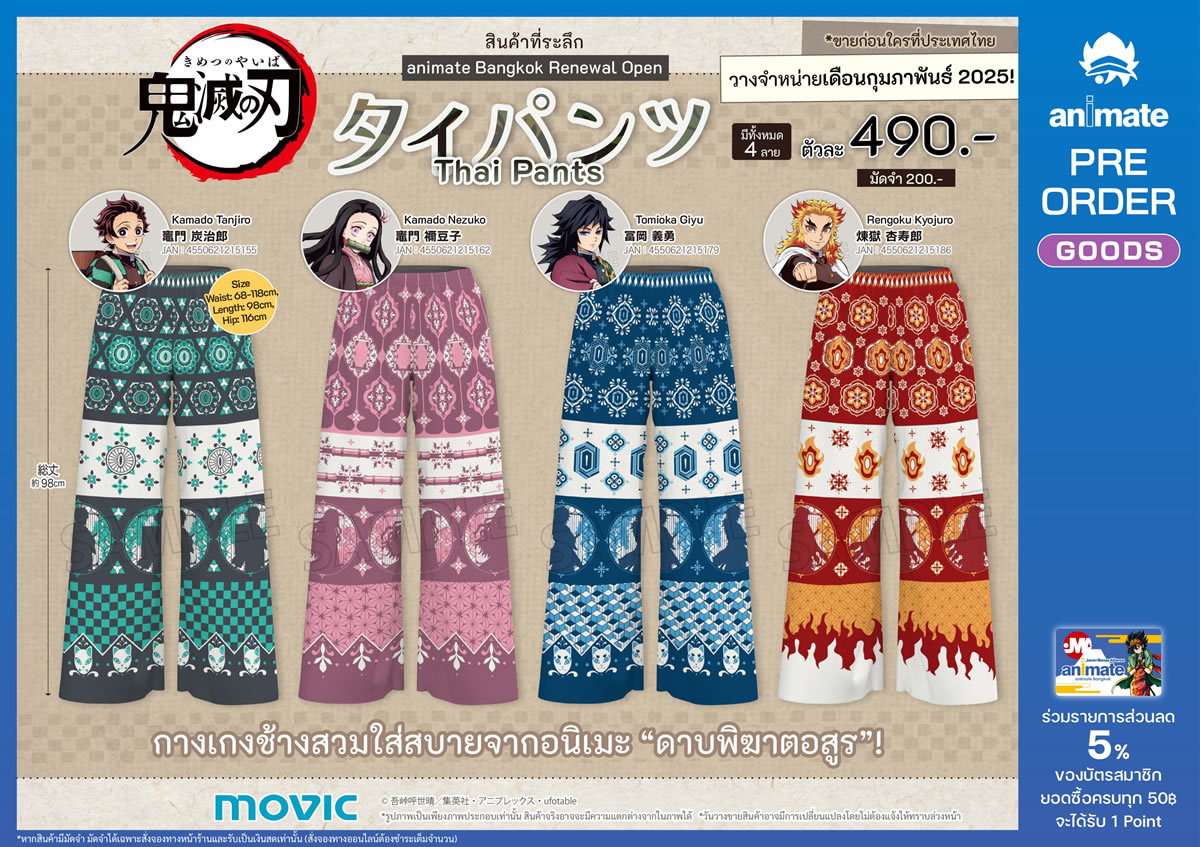 アニメ『鬼滅の刃』のタイパンツを発売するのはアニメイト。プレオーダーとなっており、MBKセンター7階とフューチャーパークランシットのアニメイト、そしてアニメイトバンコクオンラインで予約受付中です。