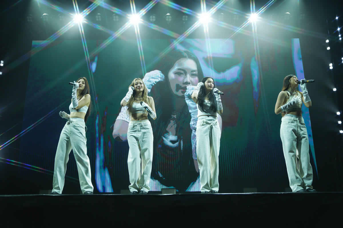 コンサートはダイナミックなダンスステップで幕を開け、「ร้องไห้ดังๆ」と「To The Top」の迫力あるパフォーマンスで会場を揺らしました。その後、楽しいメドレーでは「W R U?」「เถียงเก่ง」「เสียใจไม่เสียดาย(後悔しない)」といった人気曲で観客を魅了。