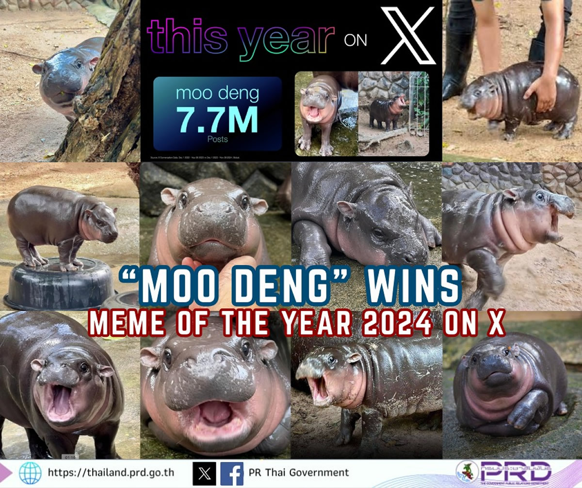 ムーデンが、X(旧Twitter)で「ミーム・オブ・ザ・イヤー2024( Meme of the Year 2024)」を7.7百万件の投稿数で受賞しました。タイ広報局が2024年12月26日に伝えています。