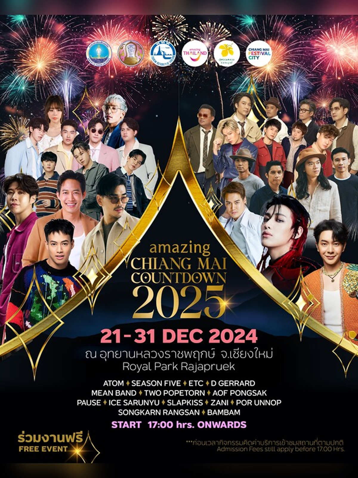 このイベントでは、タイの人気アーティストによるミニコンサートも予定されています。特に注目は、GOT7のメンバー BamBam が出演し、新年のカウントダウンを共に祝う特別パフォーマンスです。その他の出演は、ATOM、SEASON FIVE、ETC、D GERRARD、MEAN BAND、TWO POPETORN、AOF PONGSAK、PAUSE、ICE SARUNYU、SLAPKISS、ZANI、POR UNNOP、SONGKARN RANGSAN。