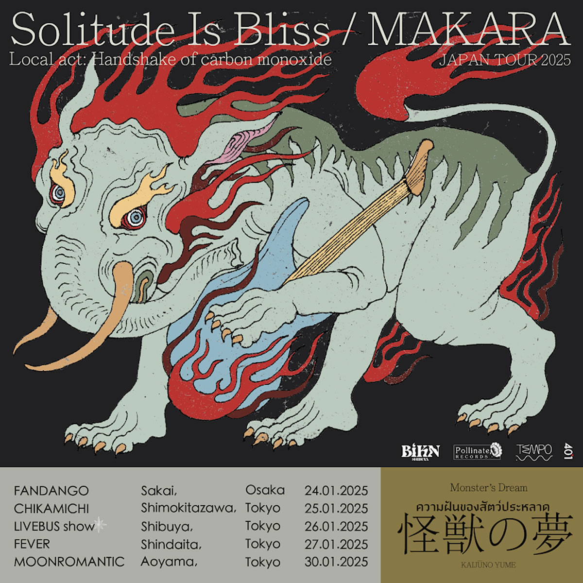 Solitude Is Bliss、MAKARA、そして日本のバンド「Handshake of carbon monoxide」と一緒に、デビュージャパンツアー「怪獣の夢」でその魔法を体感してください