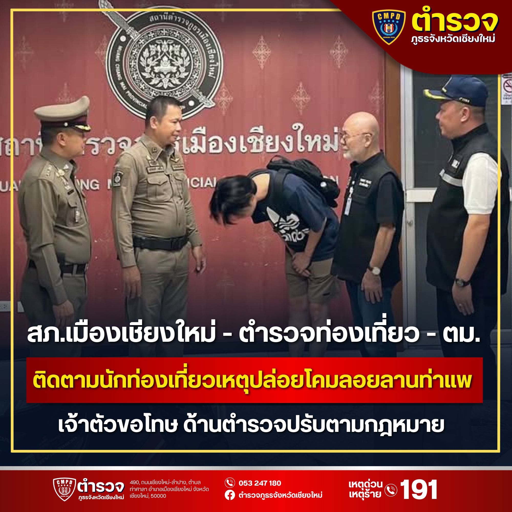 ปรับแล้ว! #นักท่องเที่ยวชาวญี่ปุ่น กรางใส่ตำรวจ ล่ามทำความเข้าใจ จนขอโทษผู้หมวด แม้ไม่ติดใจเอาความ แต่มีโทษอาญาปรับ3พัน ข้อหาขัดขื่นคำสั่งเจ้าพนักงาน #นักท่องเที่ยวต่าวชาติปล่อยโคมลอย #ตำรวจเชียงใหม่