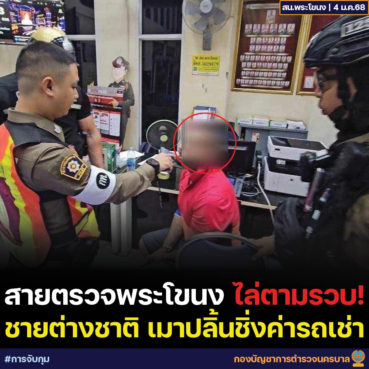 タイ警察プラカノン署の警察官が2025年1月3日午後6時45分頃、レンタルしたオートバイの修理費を支払わずに逃走した外国人の男を逮捕しました。