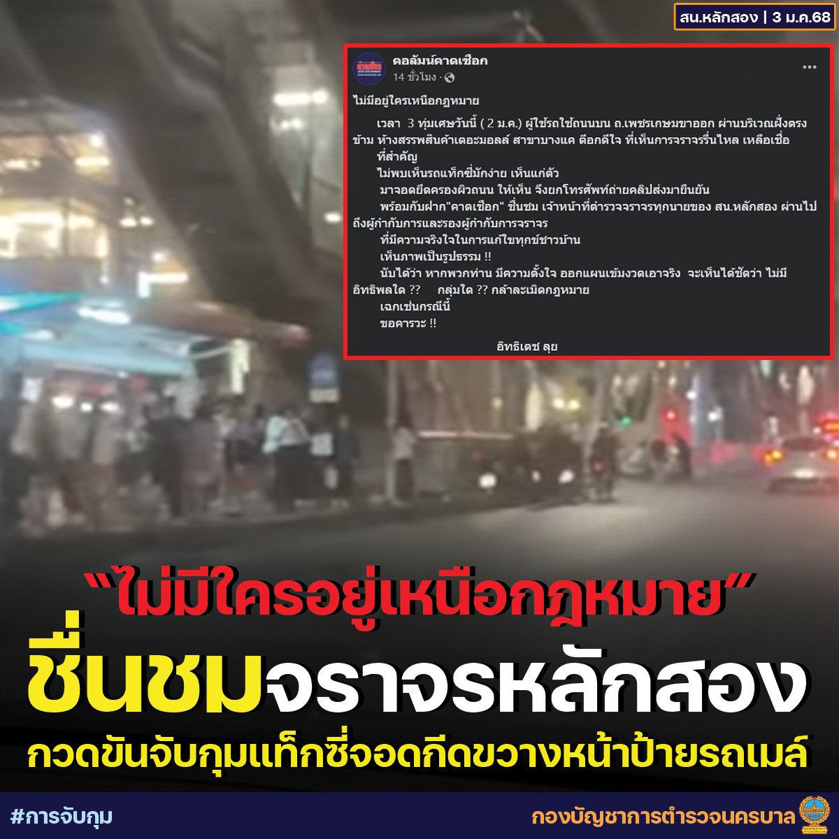 2025年1月2日午後9時頃、ラックソーン警察署がバンコクのMRTラックソーン駅周辺での違法駐停車に対する取り締まりを実施したと発表しました。今回の取り締まりは、2024年12月24日に寄せられた通報を受けたものです。