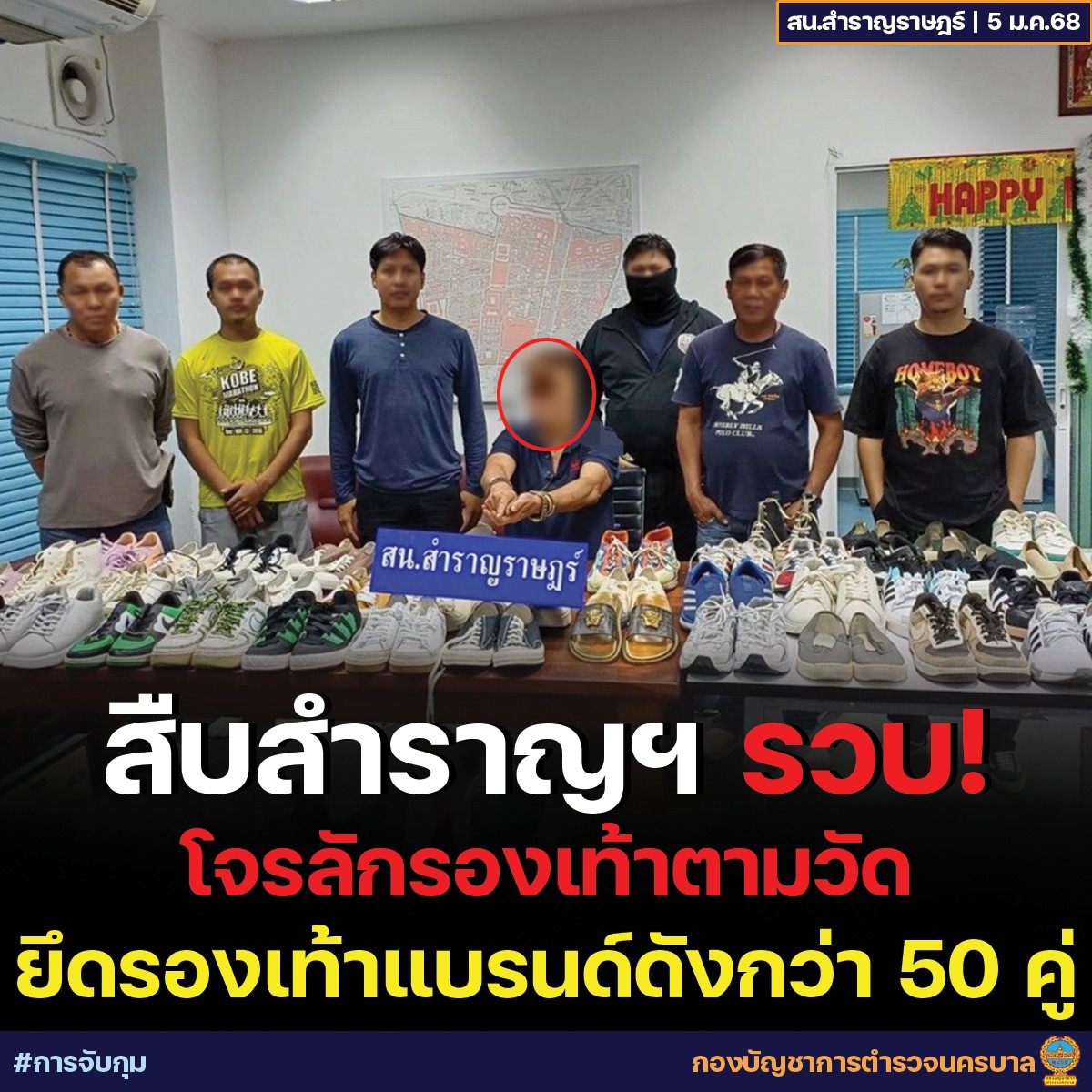タイ警察は2025年1月5日、バンコクでの靴の窃盗事件に関連し、56歳の男を逮捕しました。容疑者の住居とされる部屋からは、スポーツシューズやサンダルなど約50足が押収されました。