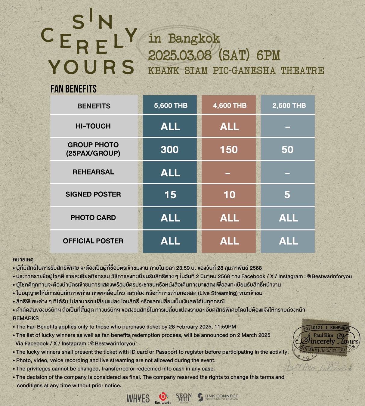 韓国のシンガーソングライターであるポール・キムが、2025年3月8日(土)にタイ・バンコクのKBank Siam Pic-Ganesha Theatreにて「2025 Paul Kim Concert <Sincerely yours> in Bangkok」を開催します。