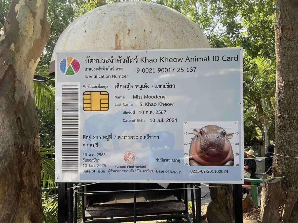 タイ東部チョンブリ県のカオキアオ動物園で2024年7月に生まれたコビトカバの女の子の赤ちゃんの名前はムーデン(หมูเด้ง)。日本語で言うと「肉団子」。あまりの愛らしさに大人気となり、いまや同動物園の、いやタイのスーパースターです。そんなムーデンにIDカードが付与された!?というニュースです。