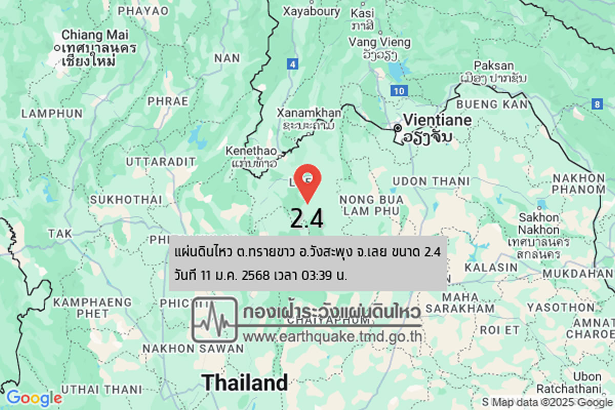 2025年1月11日(土)午前3時39分、タイ北部ルーイ県ワンサプン郡サーイカーオを震源とするマグニチュード2.4の地震が発生しました。震源の深さは1キロ。