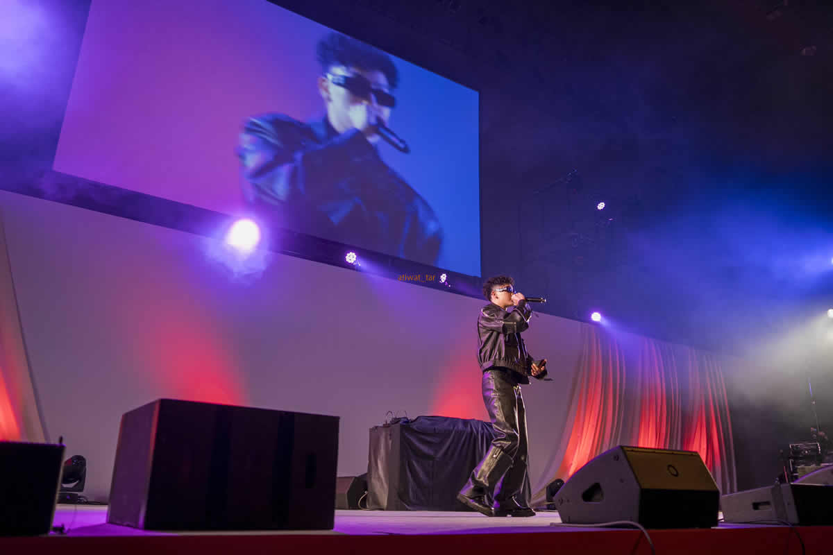 特にタイからは、新成人でもあり、人気係優兼ミュージシャンとして知られるアティワット・センティエンさんが参加。自身の作詞作曲による曲を二曲披露し、言語の壁を超えて会 場に集まった新成人から歓声が起こりました。