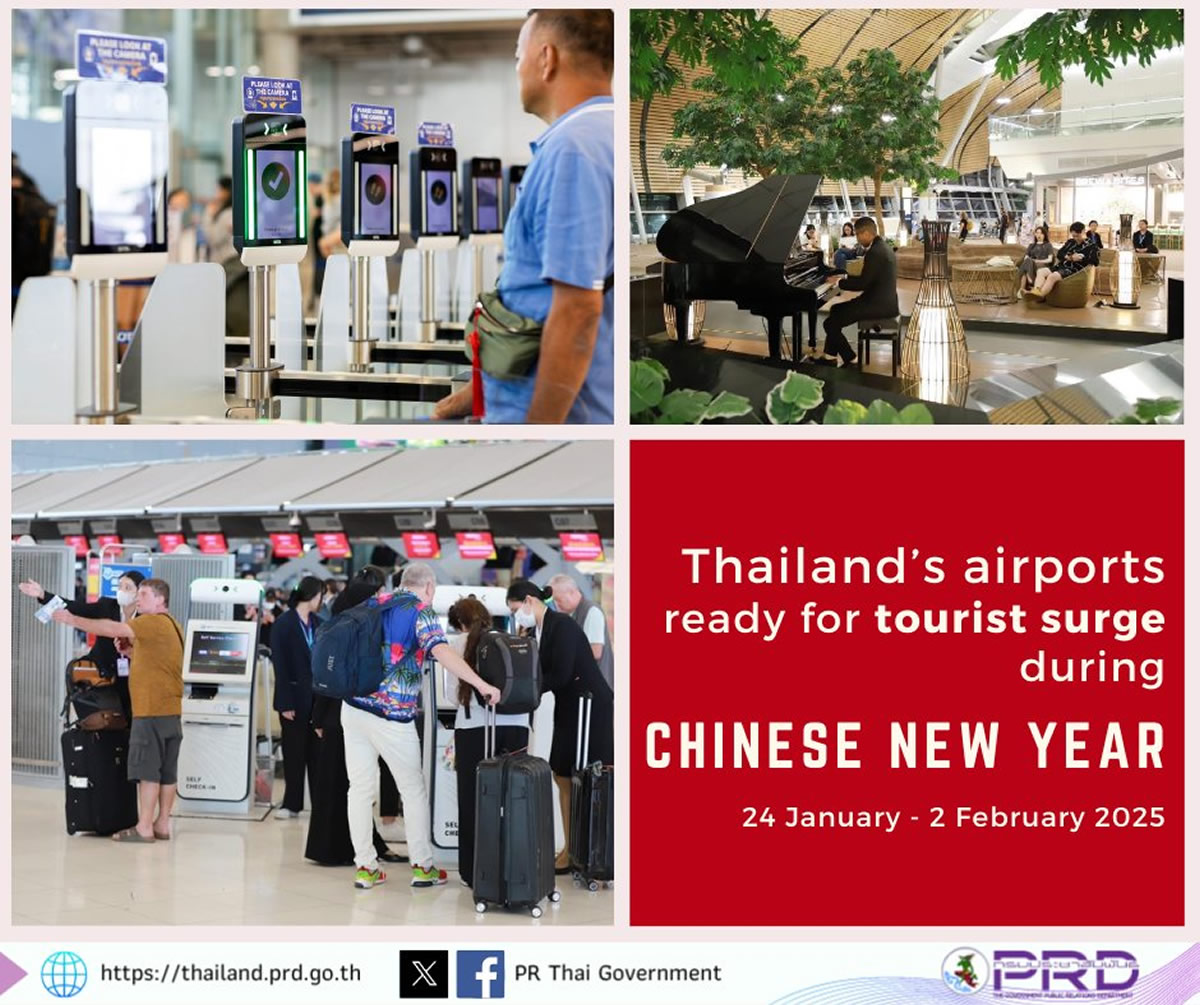タイ運輸省は、中国正月(春節)期間中に観光客の大幅な増加が予想される中、主要空港での受け入れ態勢を強化していることを発表しました。タイ広報局が2025年1月16日に伝えています。